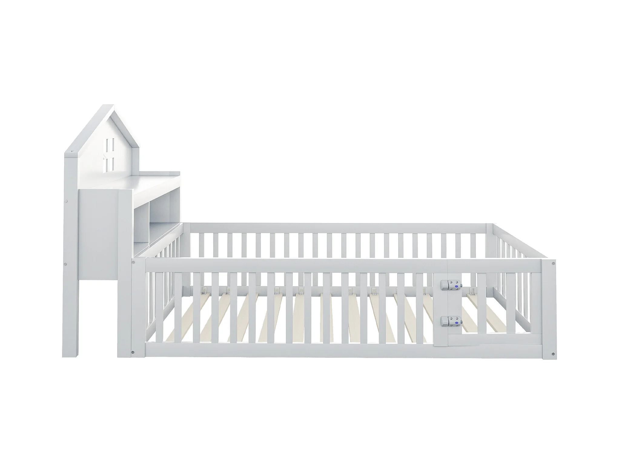 Cama infantil 90 x 200 cm - Cama individual con barandillas de seguridad y puerta - estanterías y almacenaje - madera blanca
