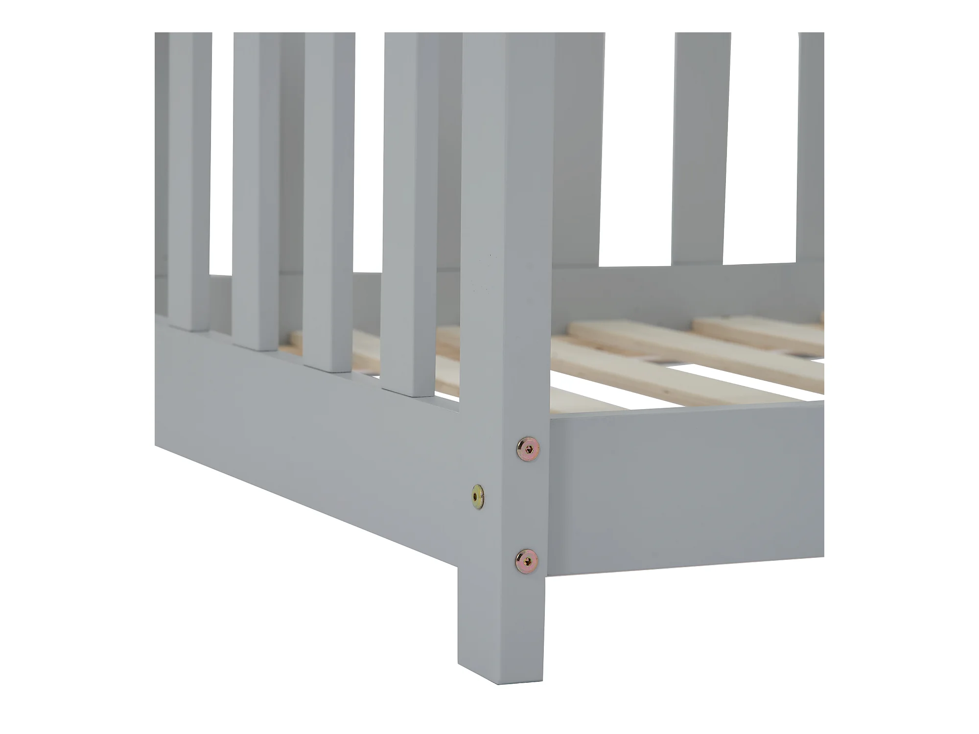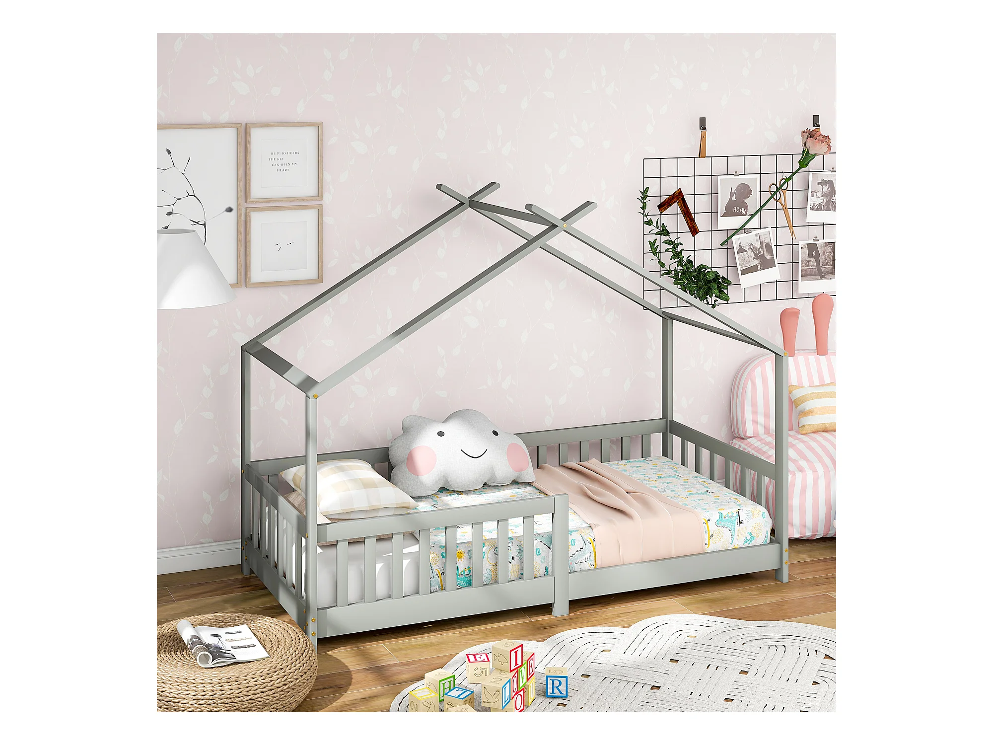 Cama infantil tipo casita 90x200 cm - Barreras de seguridad anticaídas - Madera natural pintada gris (sin colchón)