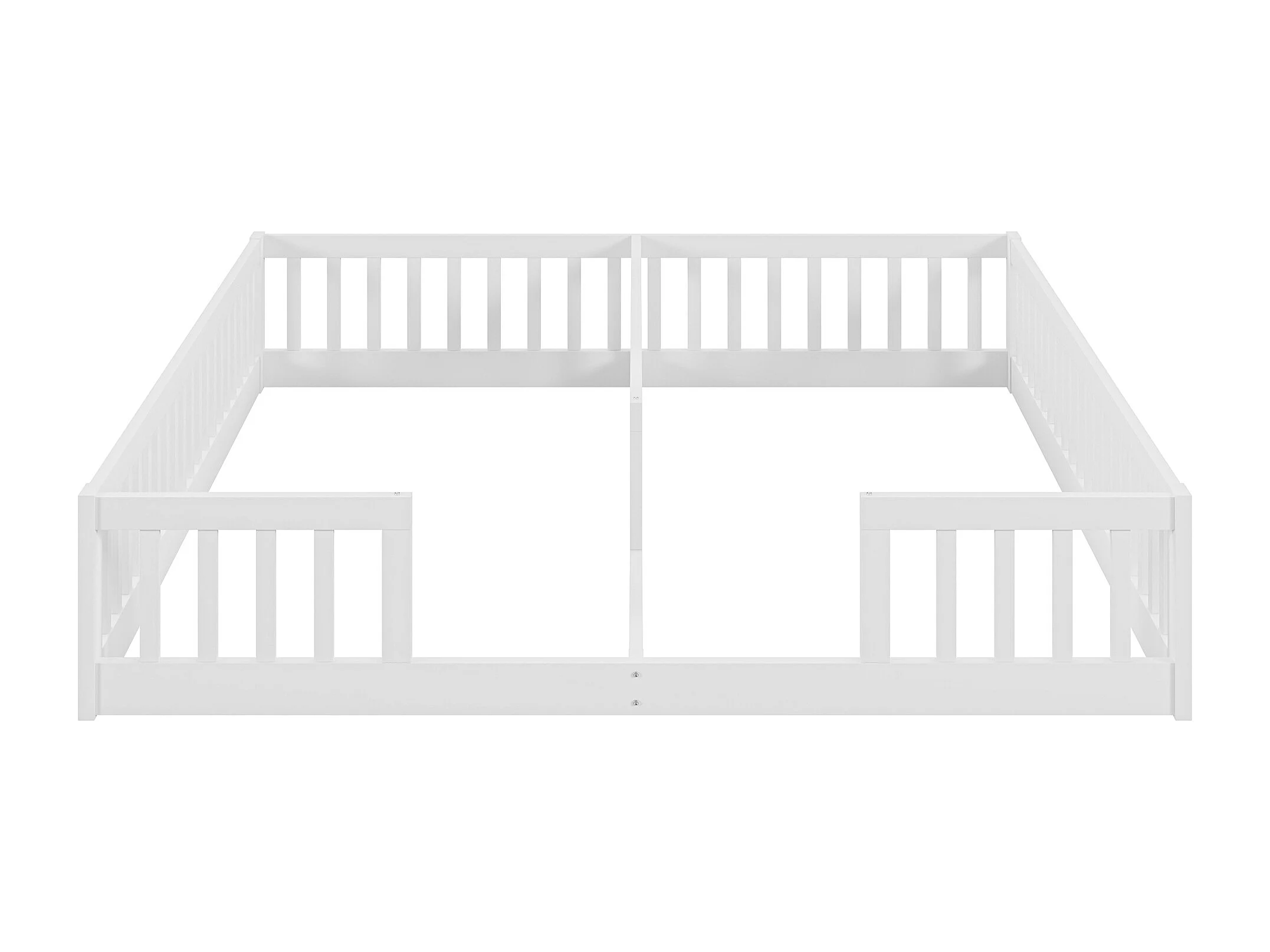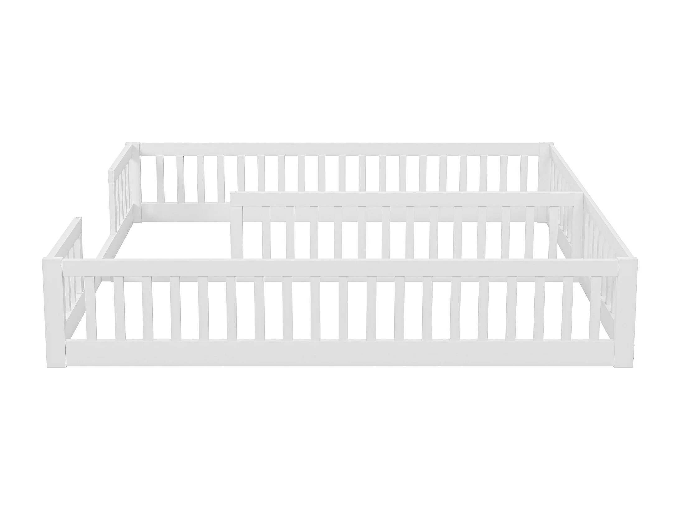 Cama infantil 90x200 cm panel con barrera de seguridad en madera maciza para 2 niños color blanco