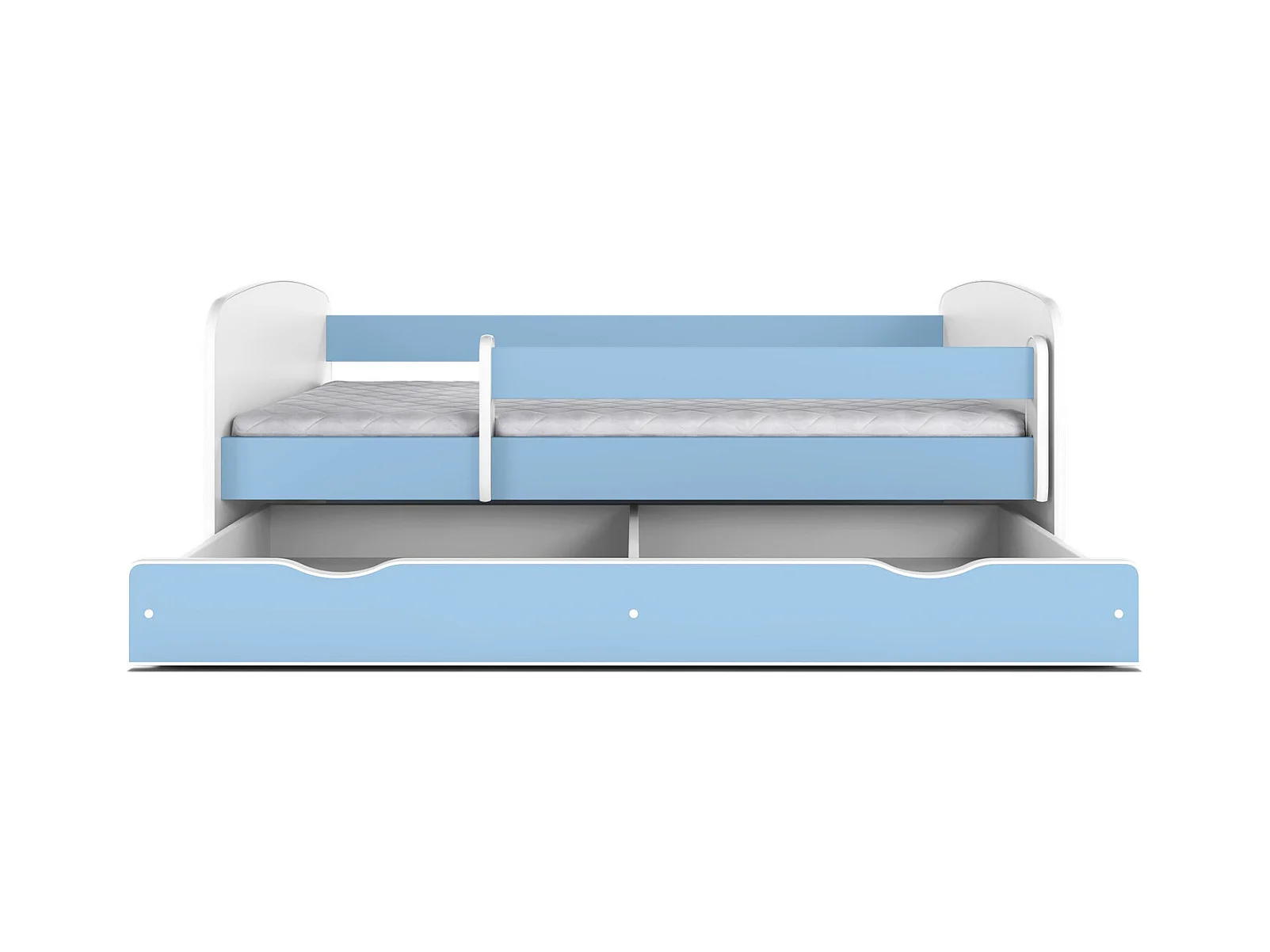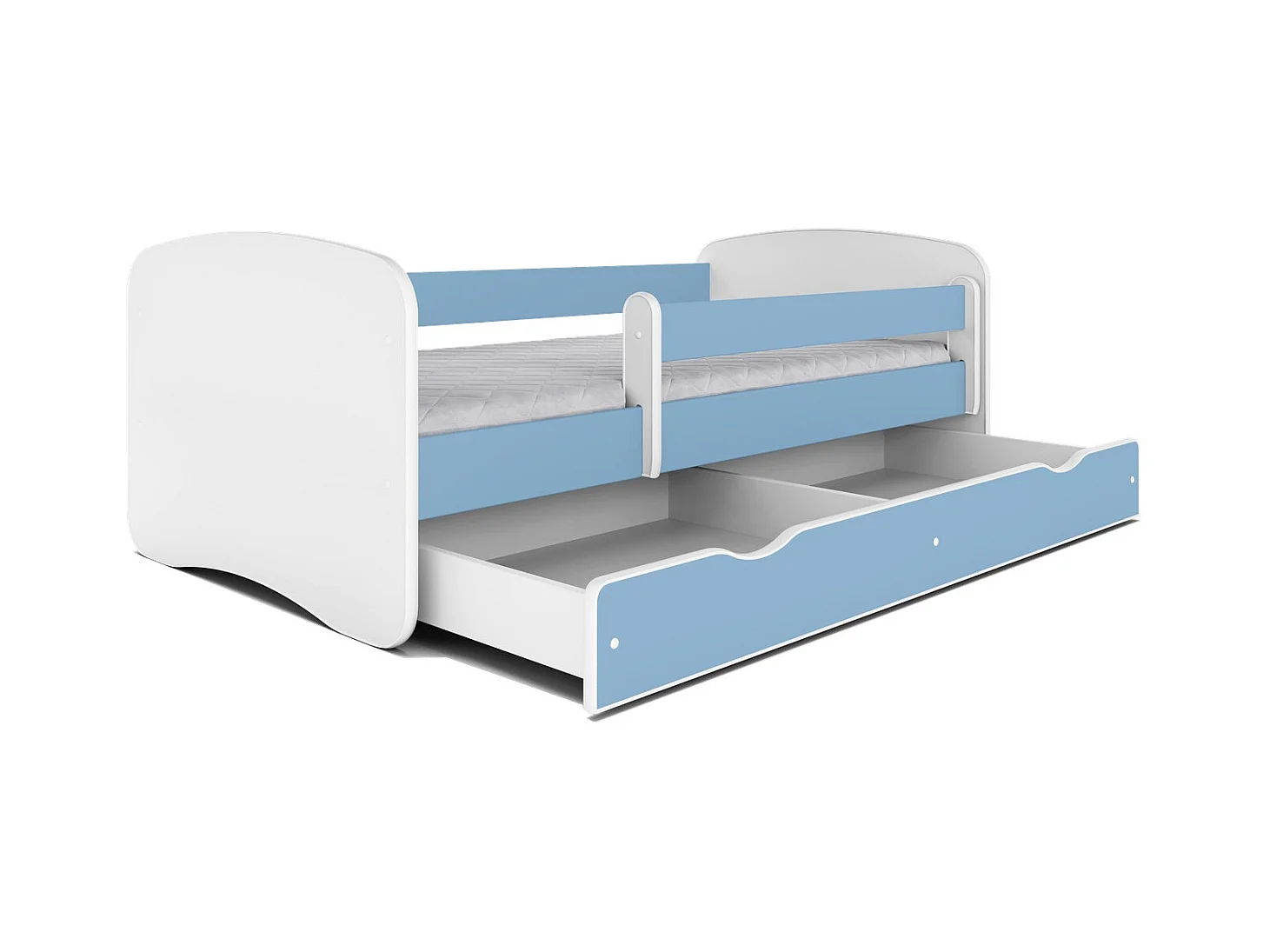 Cama infantil azul con somieres y barrera de seguridad extraíble Drimy-Colchones de espuma-Ropa de cama 80x180 cm-Cajones Con cajón