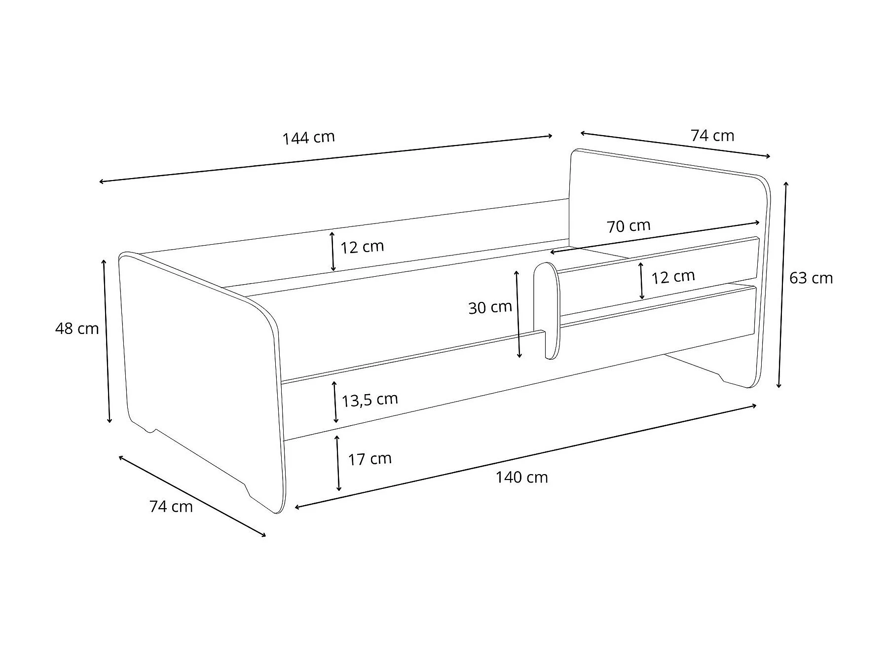 Cama Infantil Blanca 140x70 cm con Barandilla – Incluye Colchón de Espuma, Estructura Completa y Protección Lateral, Dimensiones 144x74,5x63 cm