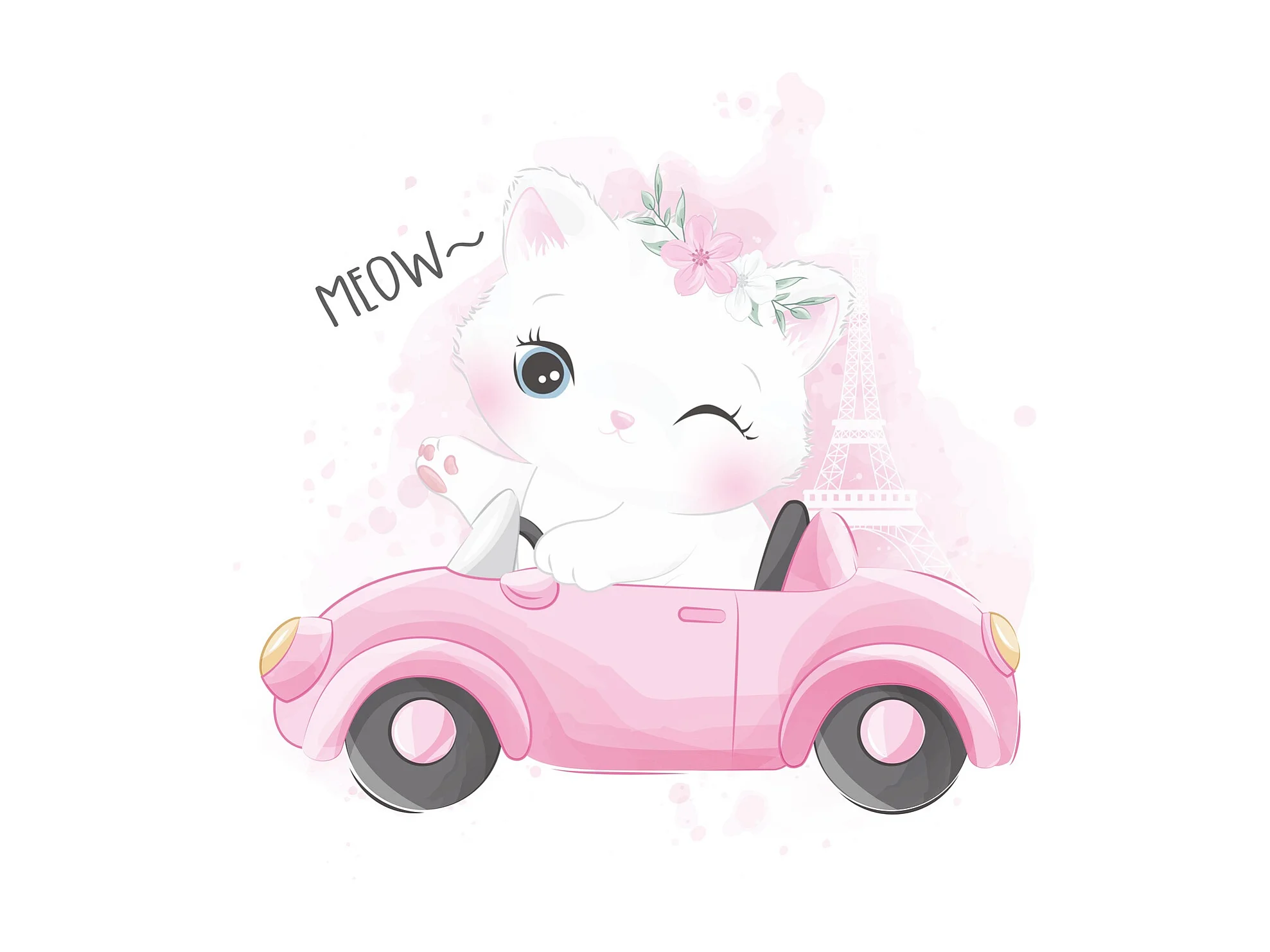 Cama Infantil Blanca 140x70 cm Dibujo Gato con Barandilla – Incluye Colchón de Espuma, Estructura Completa 144x78x65 cm, Diseño Seguro y Funcional
