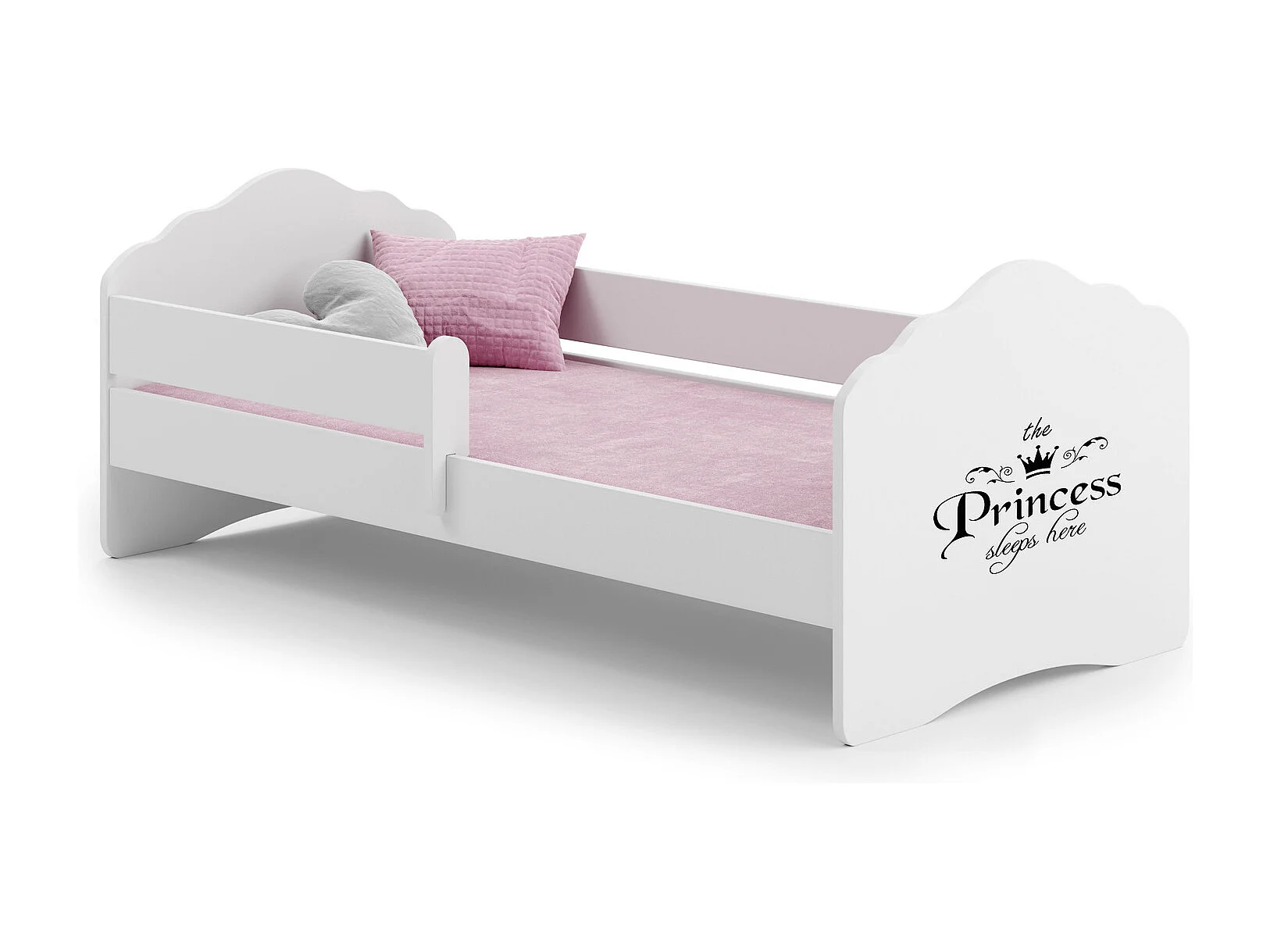 Cama Infantil Blanca 140x70 cm Dibujo Princesa con Barandilla – Incluye Colchón de Espuma, Estructura Completa 144x78x65 cm, Diseño Seguro y Funcional