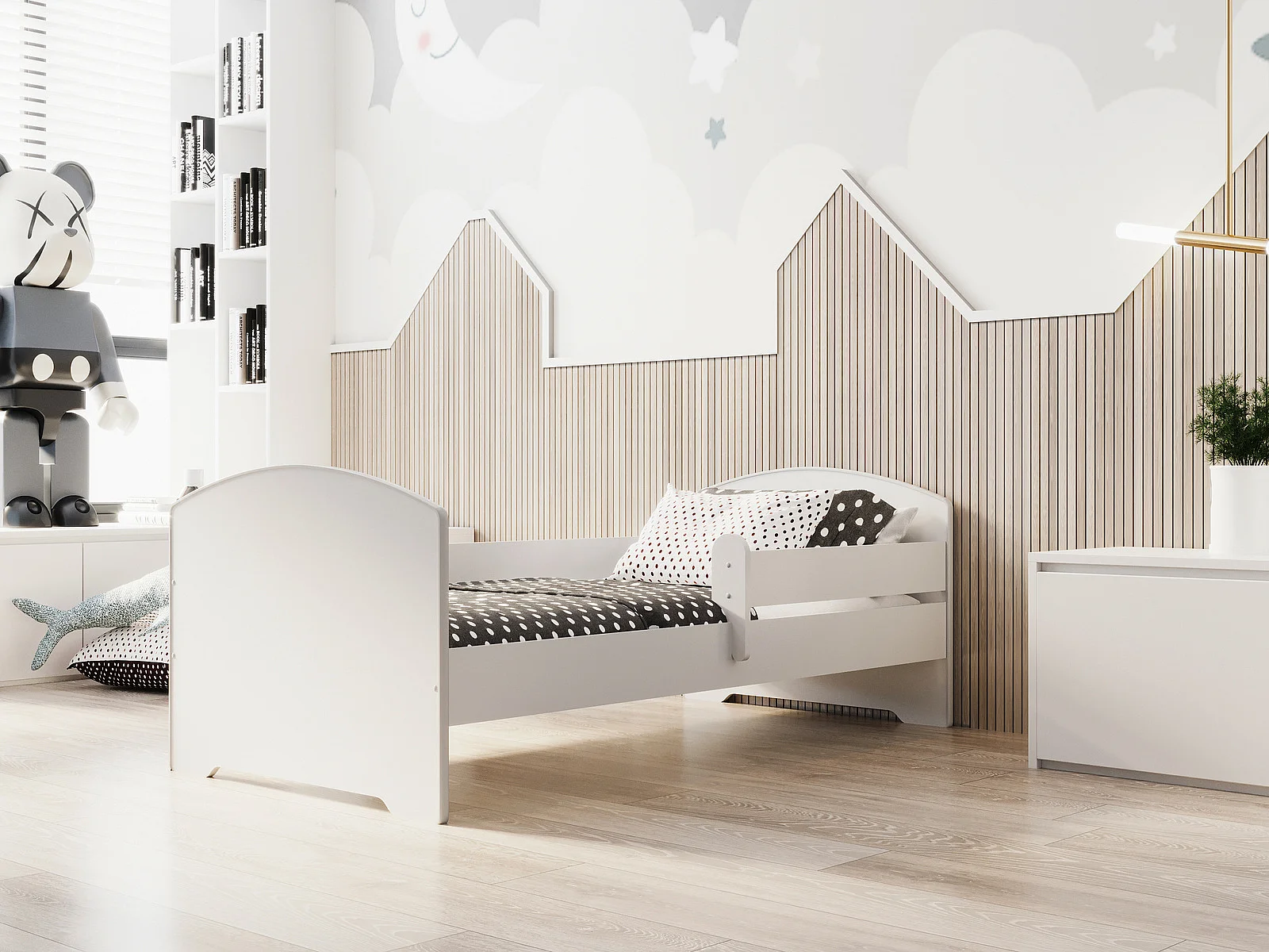 Cama Infantil Blanca 140x70 cm Moderno con Barandilla – Incluye Colchón de Espuma y Estructura Completa, Dimensiones 144 cm x77 cm x56 cm