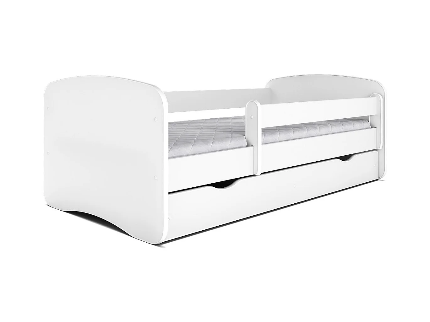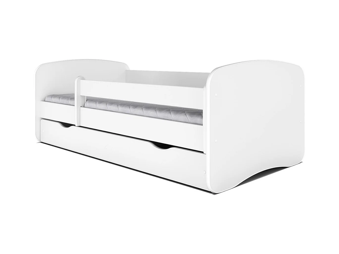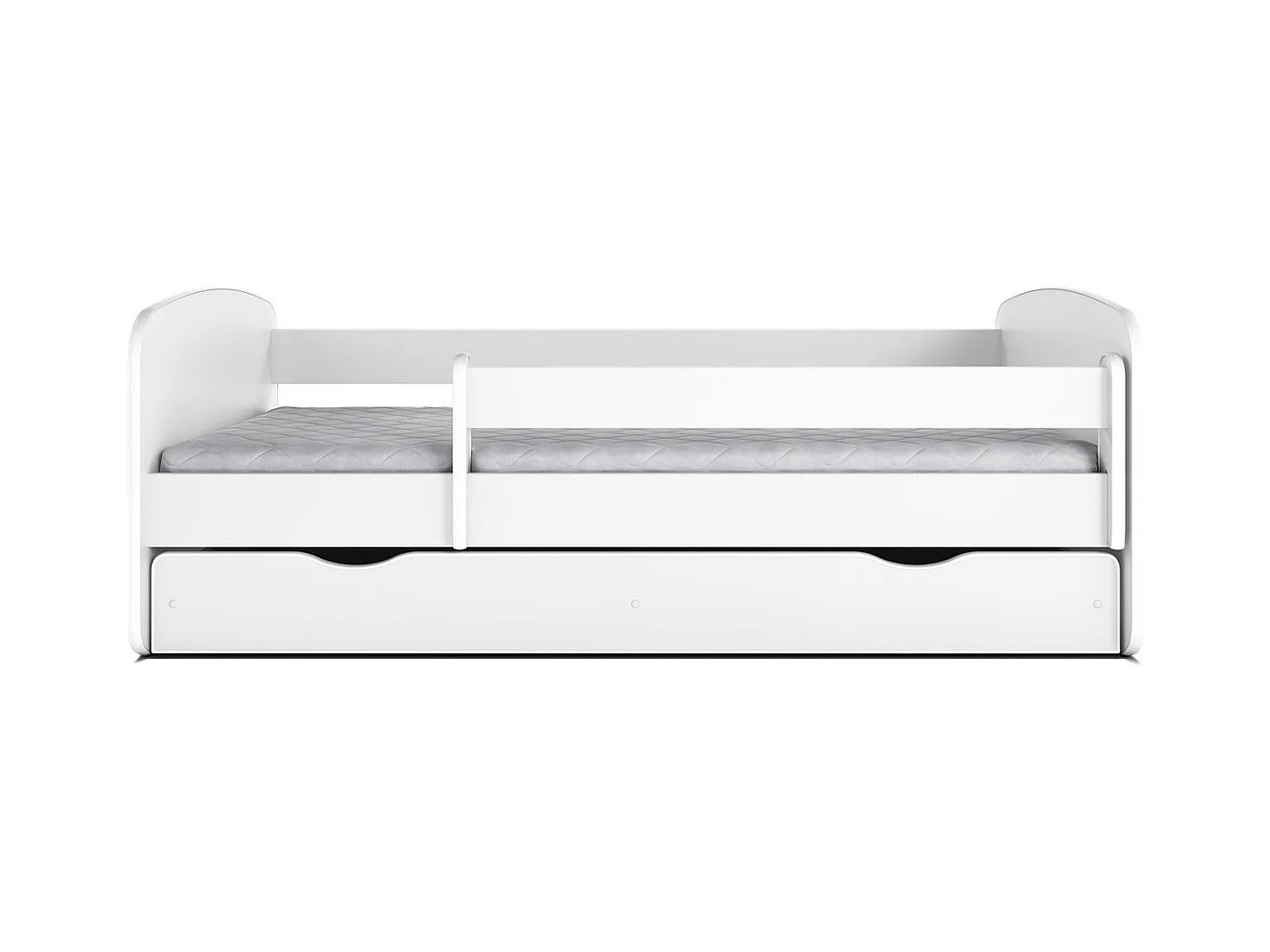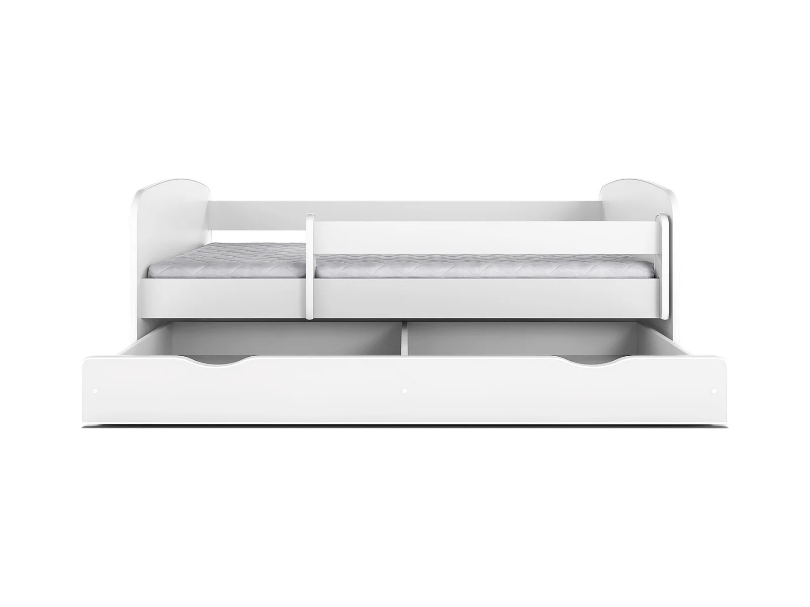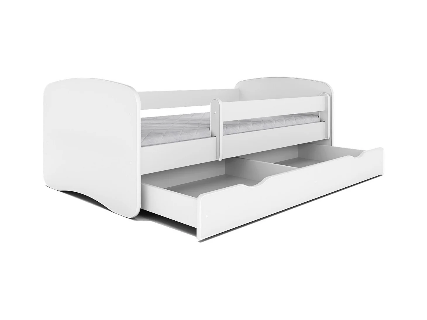 Cama infantil blanca con somieres y barrera de seguridad extraíble Drimy-Colchones de espuma-Ropa de cama 70x140 cm-Cajones Con cajón