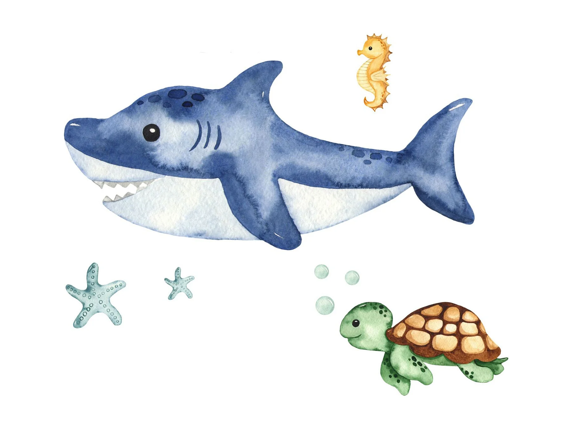 Cama Infantil Blanca Estilo Escandinavo Dibujo Tiburón 140x70 cm con Cajón – Incluye Colchón de Espuma, Base y Estructura Completa