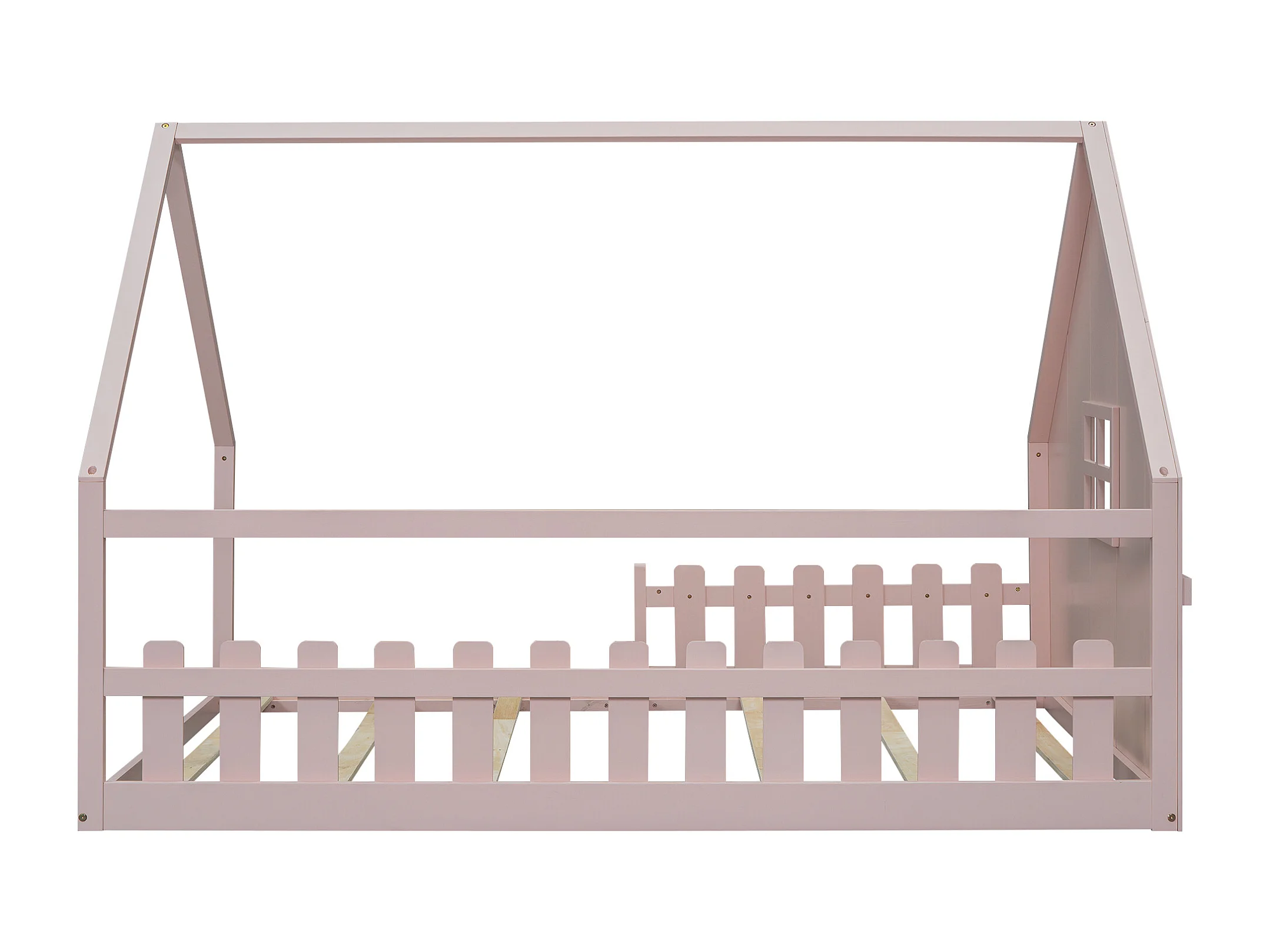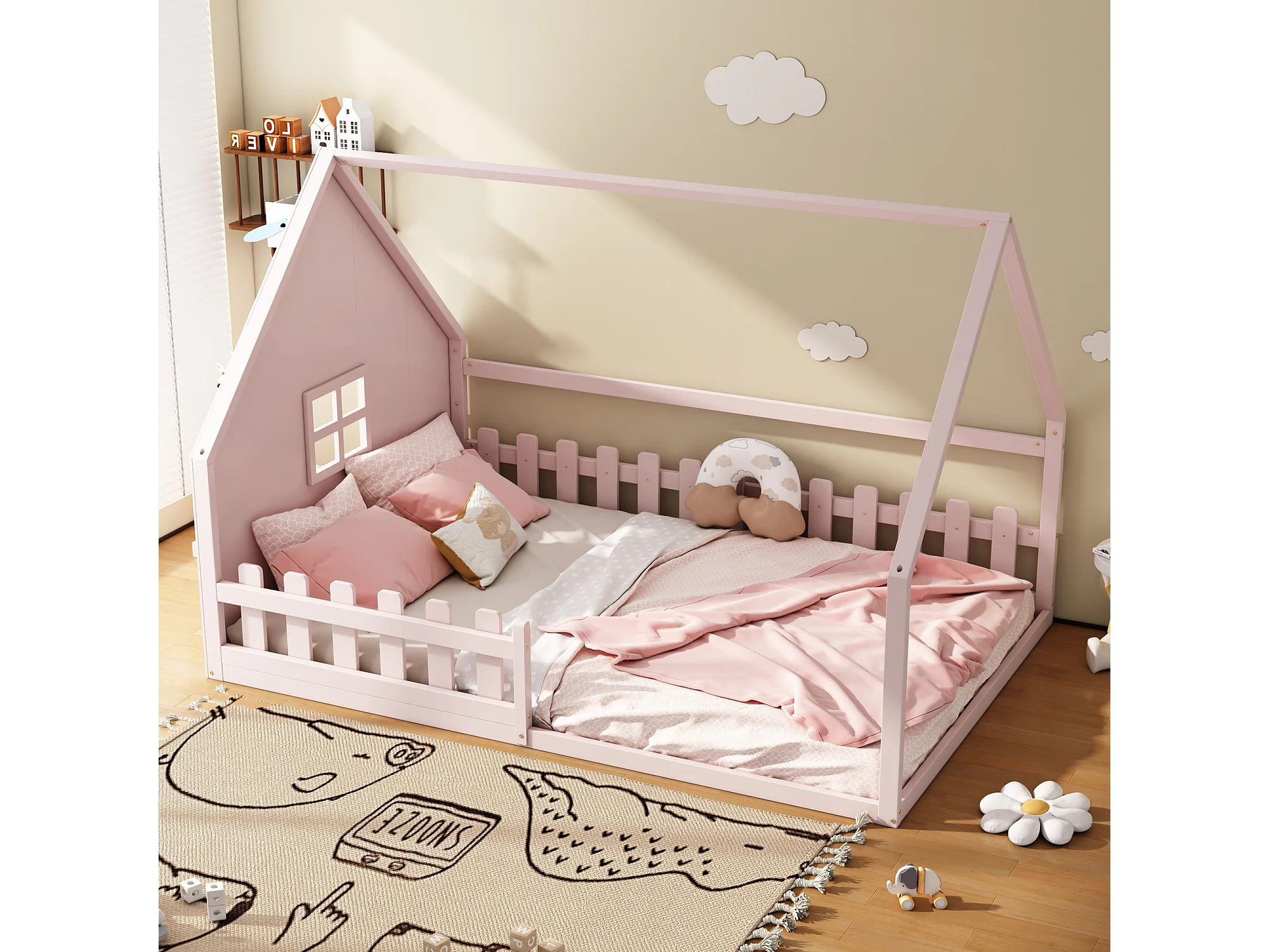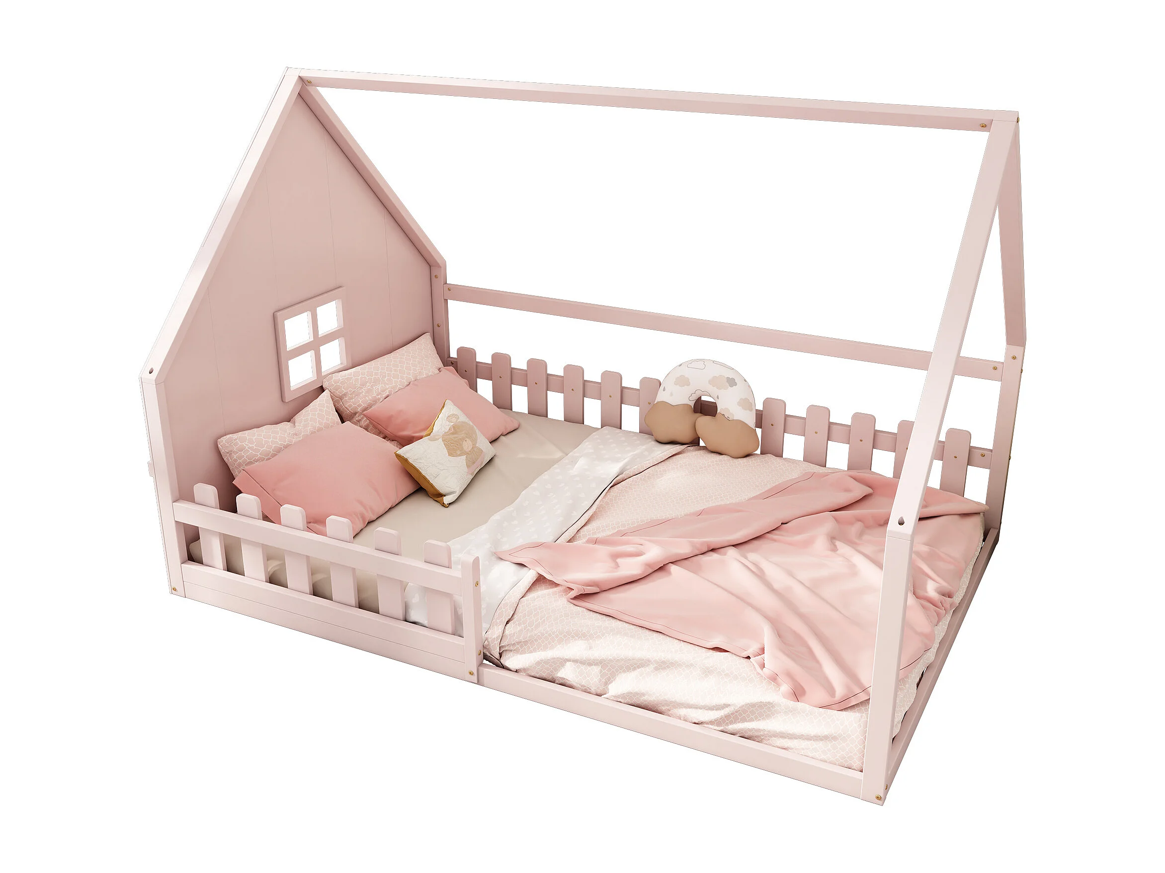 Cama casita infantil 140x200 cm con barreras de seguridad, rosa (sin colchón)