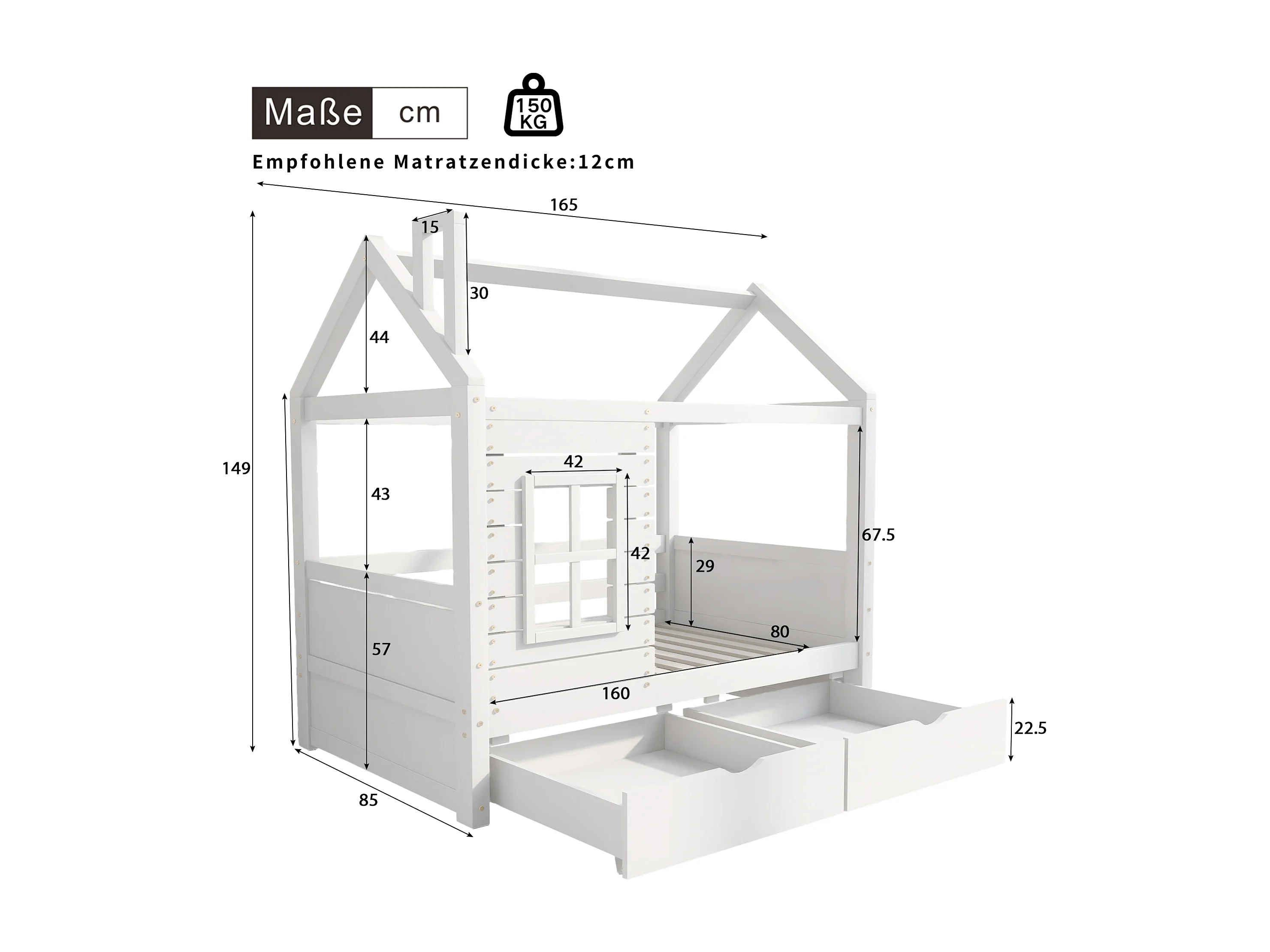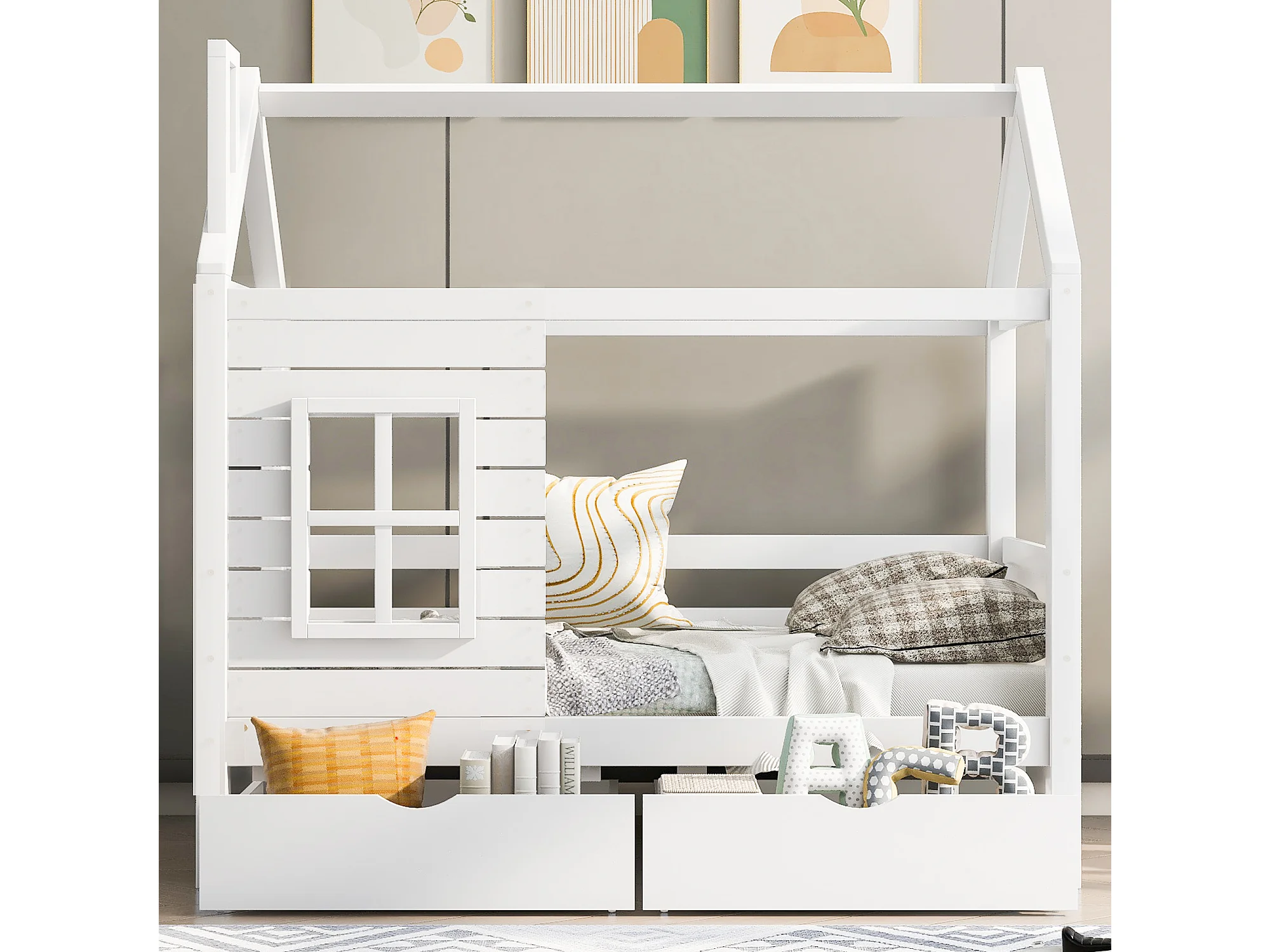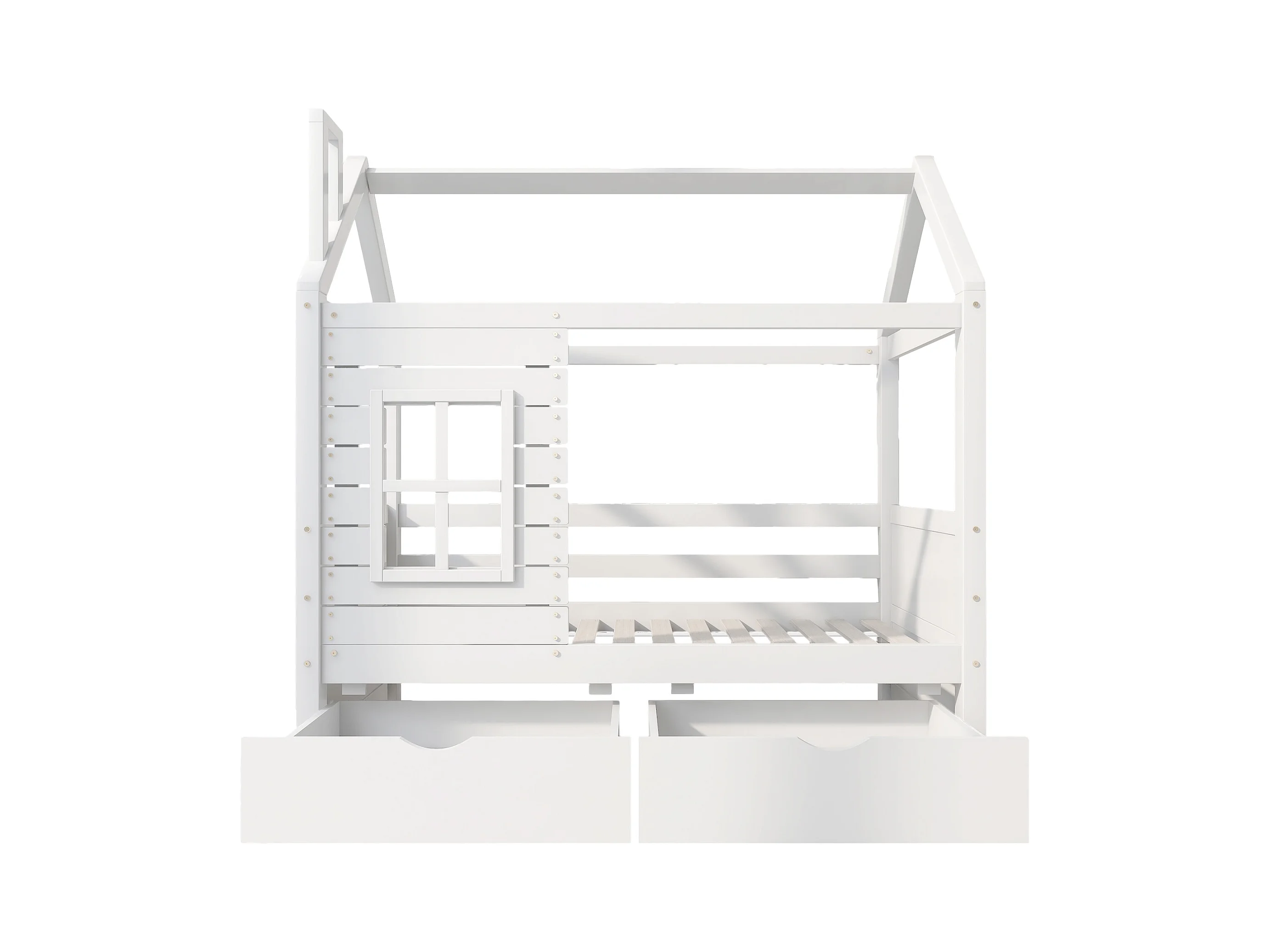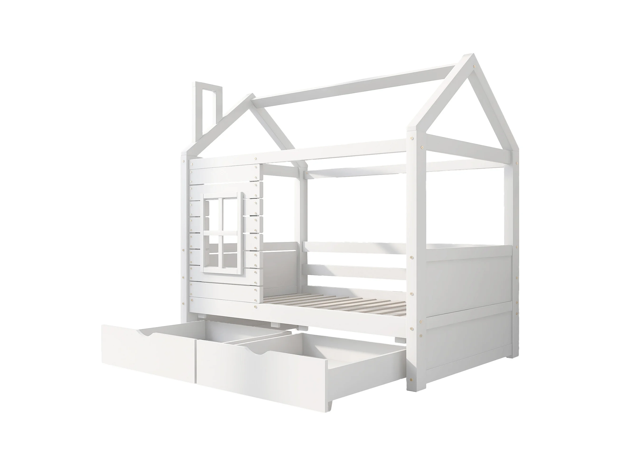 Cama infantil cabina 80x160 cm con somier de láminas - protección anticaídas 2 cajones de almacenaje - madera - blanco (sin colchón)