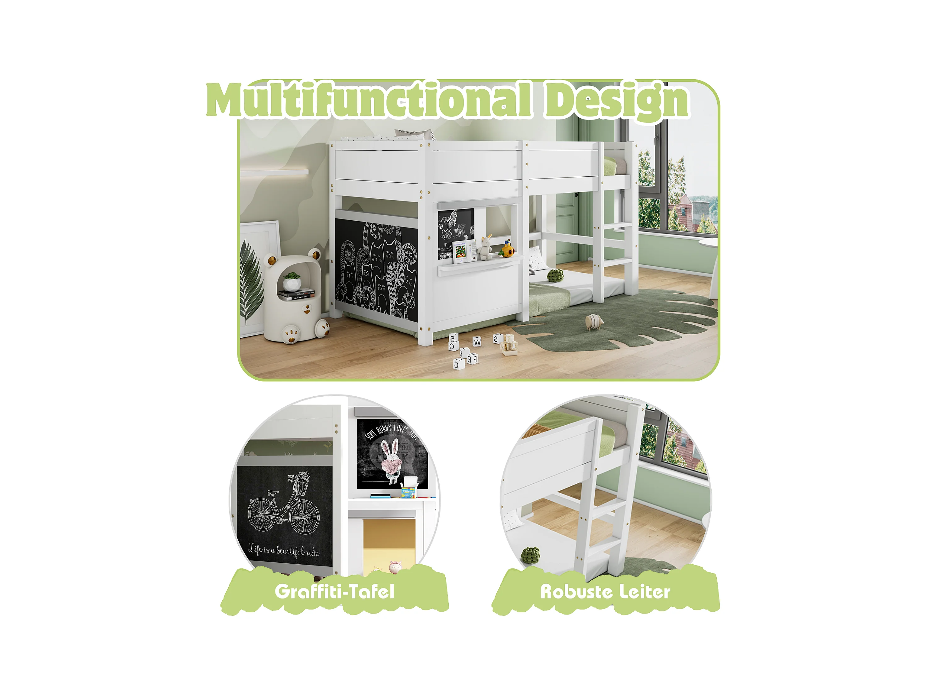 Cama infantil cabina 90x200 cm madera de pino blanco con estante de pizarra y escalera de seguridad