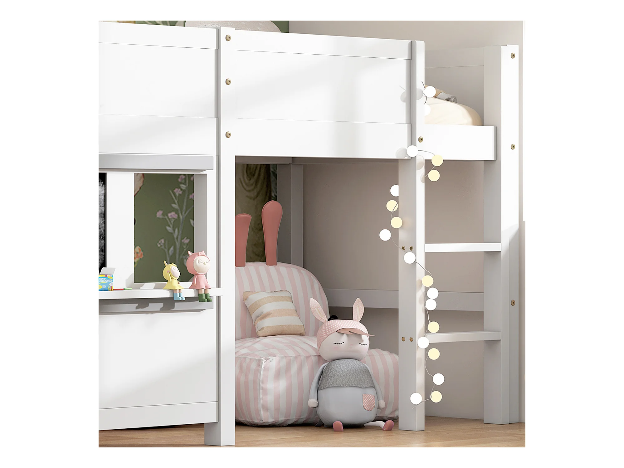 Cama-cabina nido 90x200 cm pino macizo blanco con ventana Parade