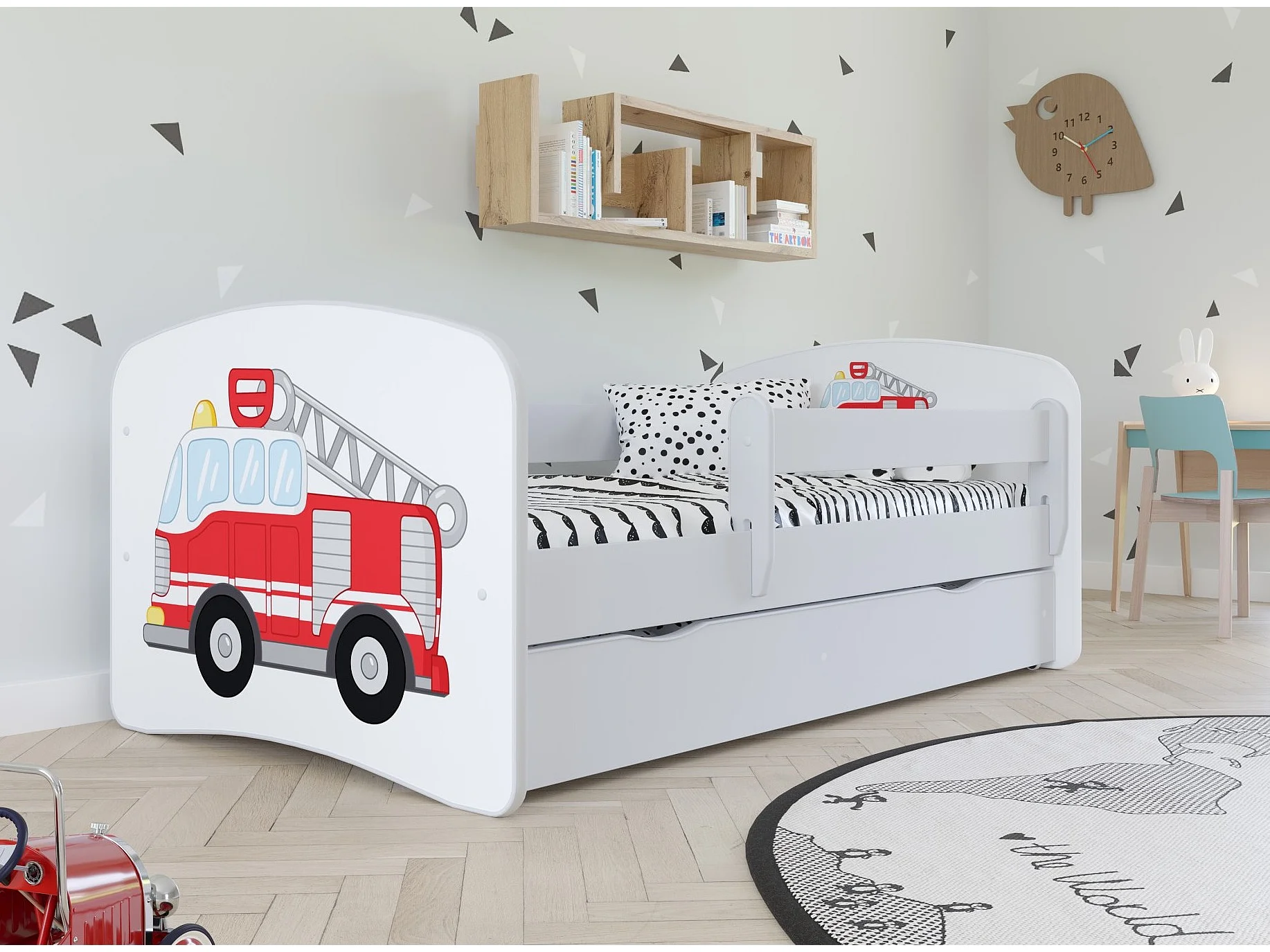 Cama infantil camión de bomberos con somieres y barrera de seguridad extraíble Drimy-Colchones de espuma-Ropa de cama 80x180 cm