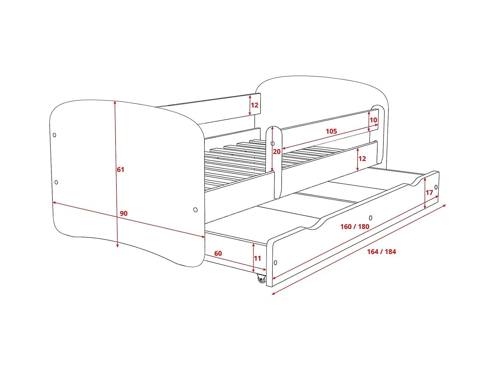 Cama infantil automotriz con somieres y barrera de seguridad extraíble Drimy-Ropa de cama 80x180 cm