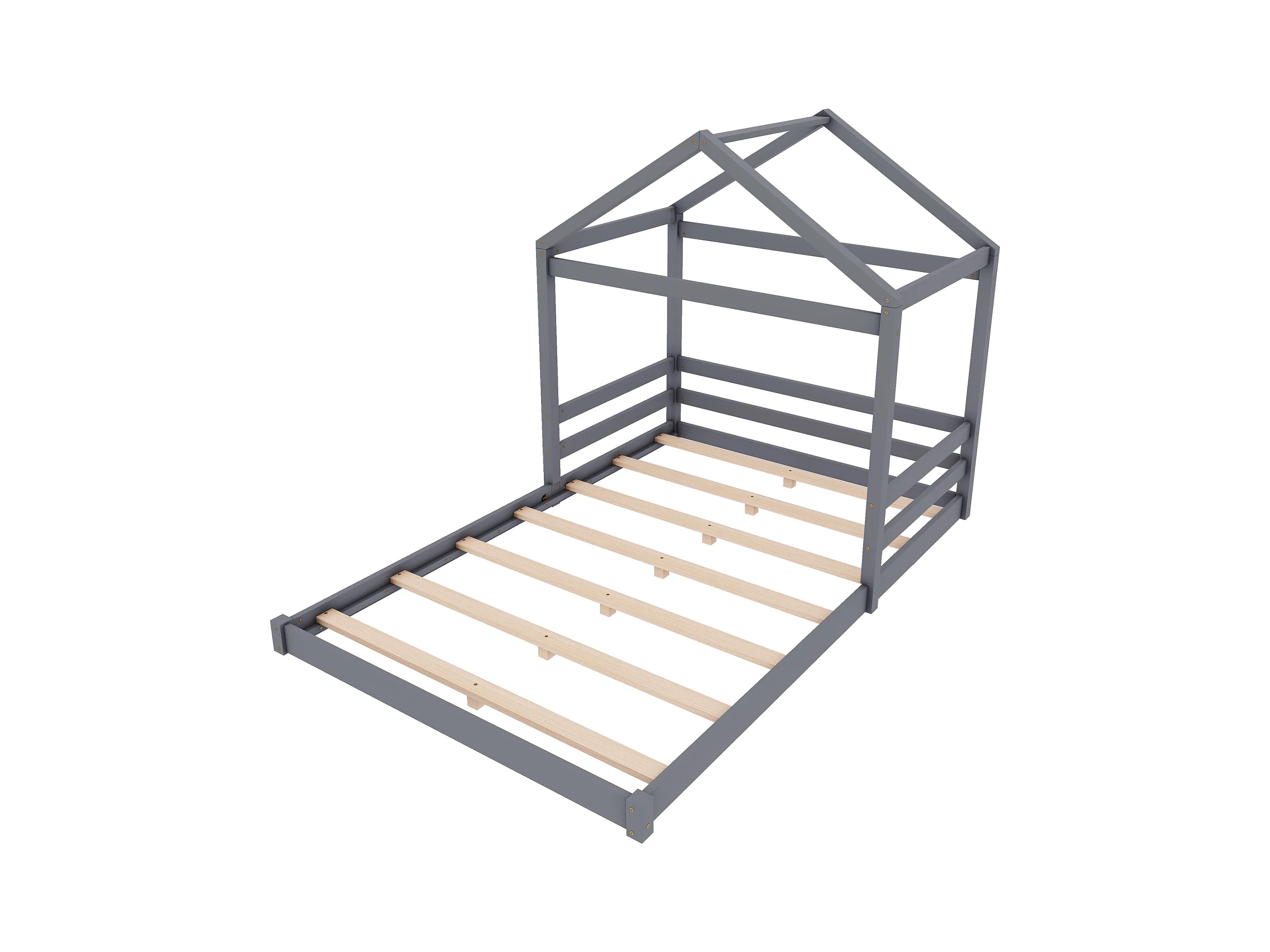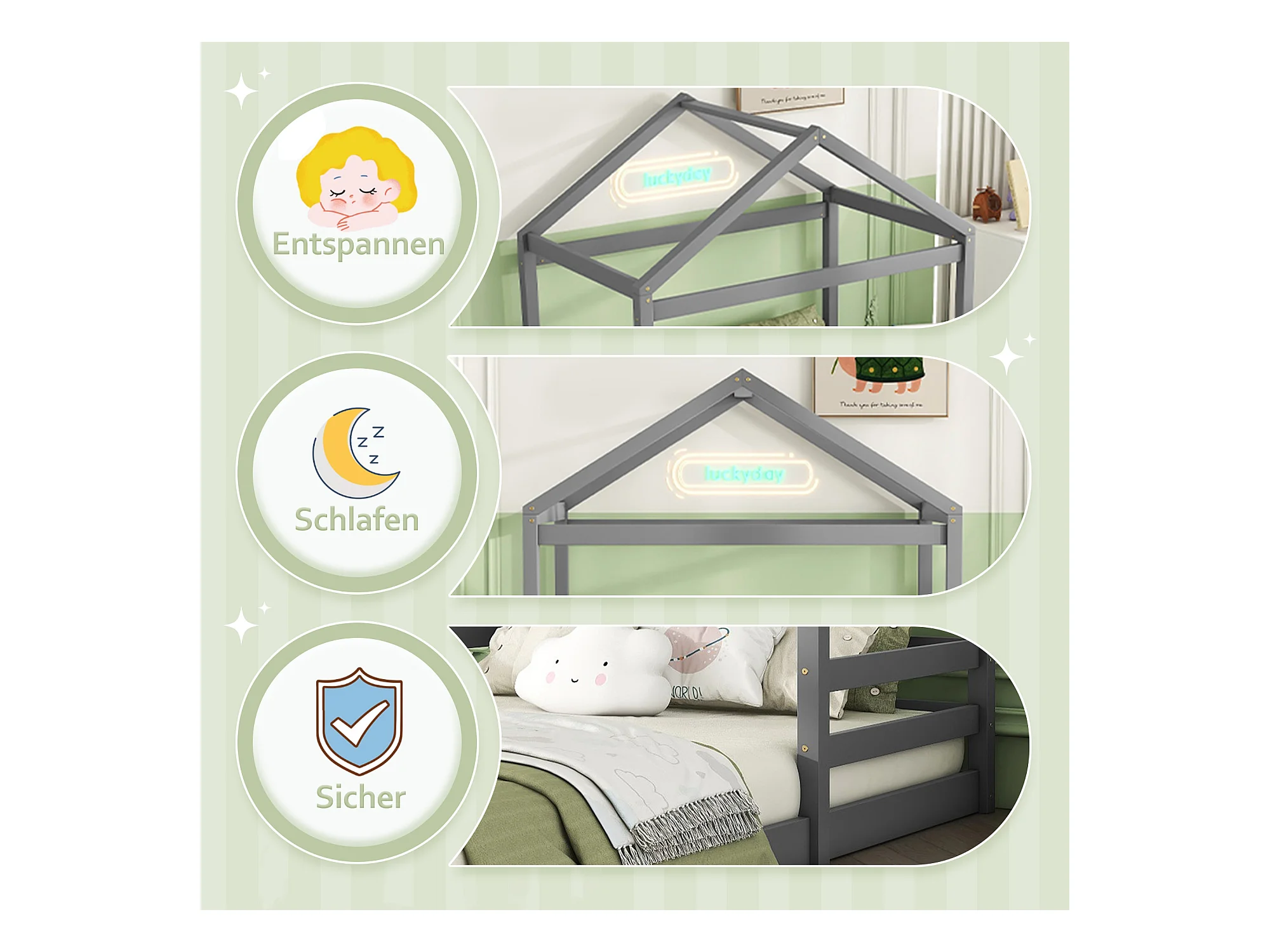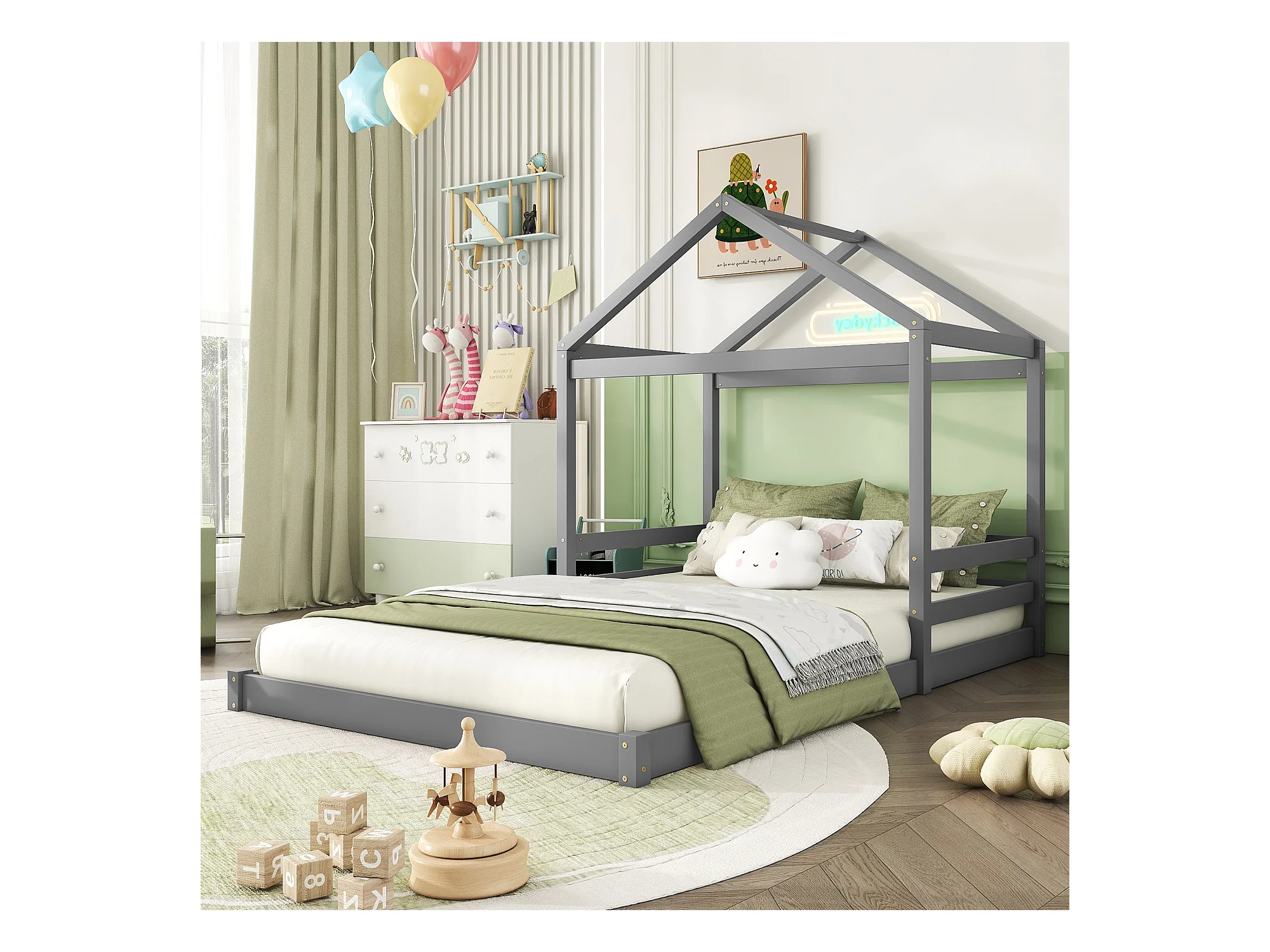 Cama infantil casita 140x200 cm en madera maciza con base, estilo minimalista gris