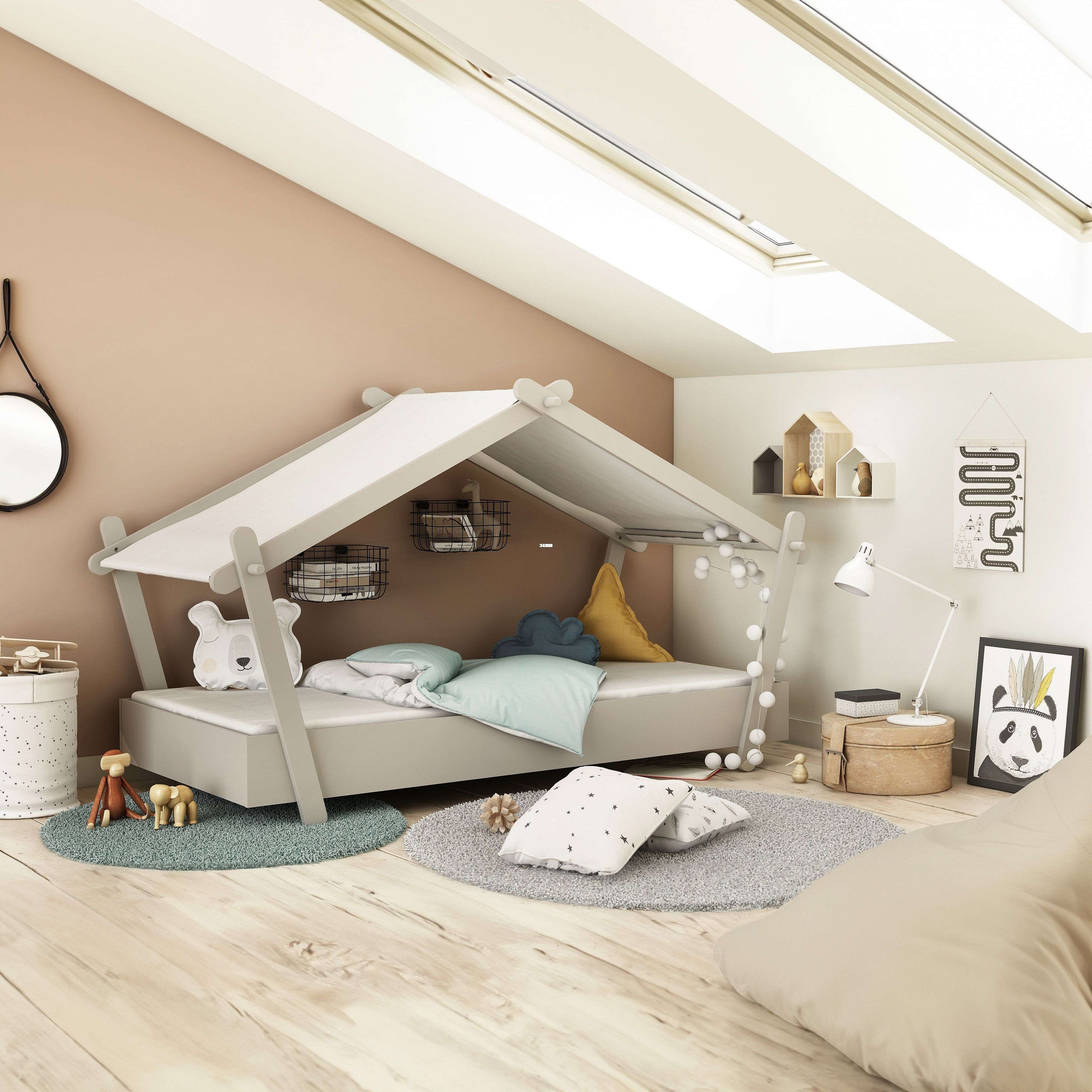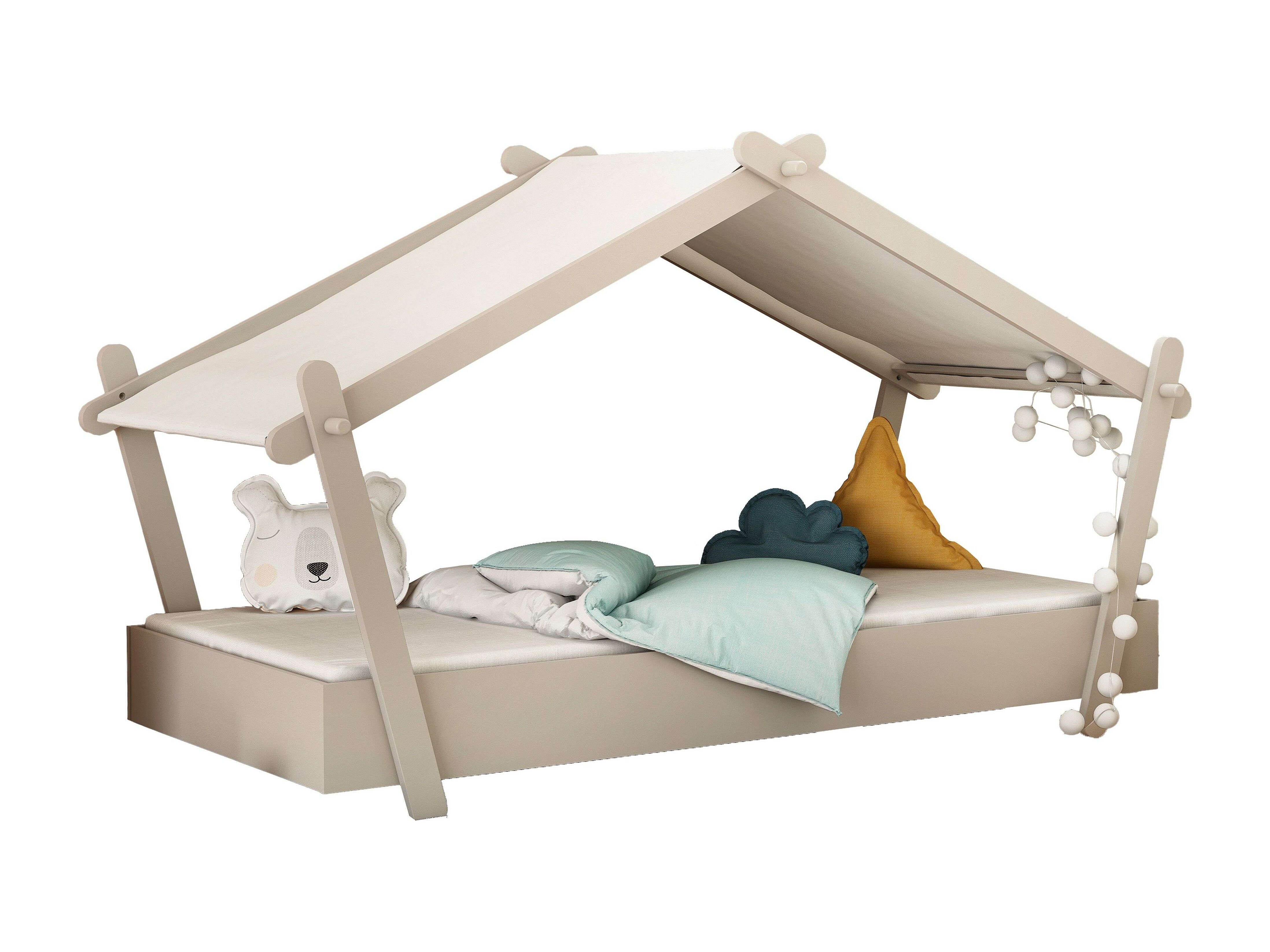 ML-Design Cama infantil 90x200cm color gris claro con listones de madera de pino maciza mobiliario forma de casa casa de campaña para niños