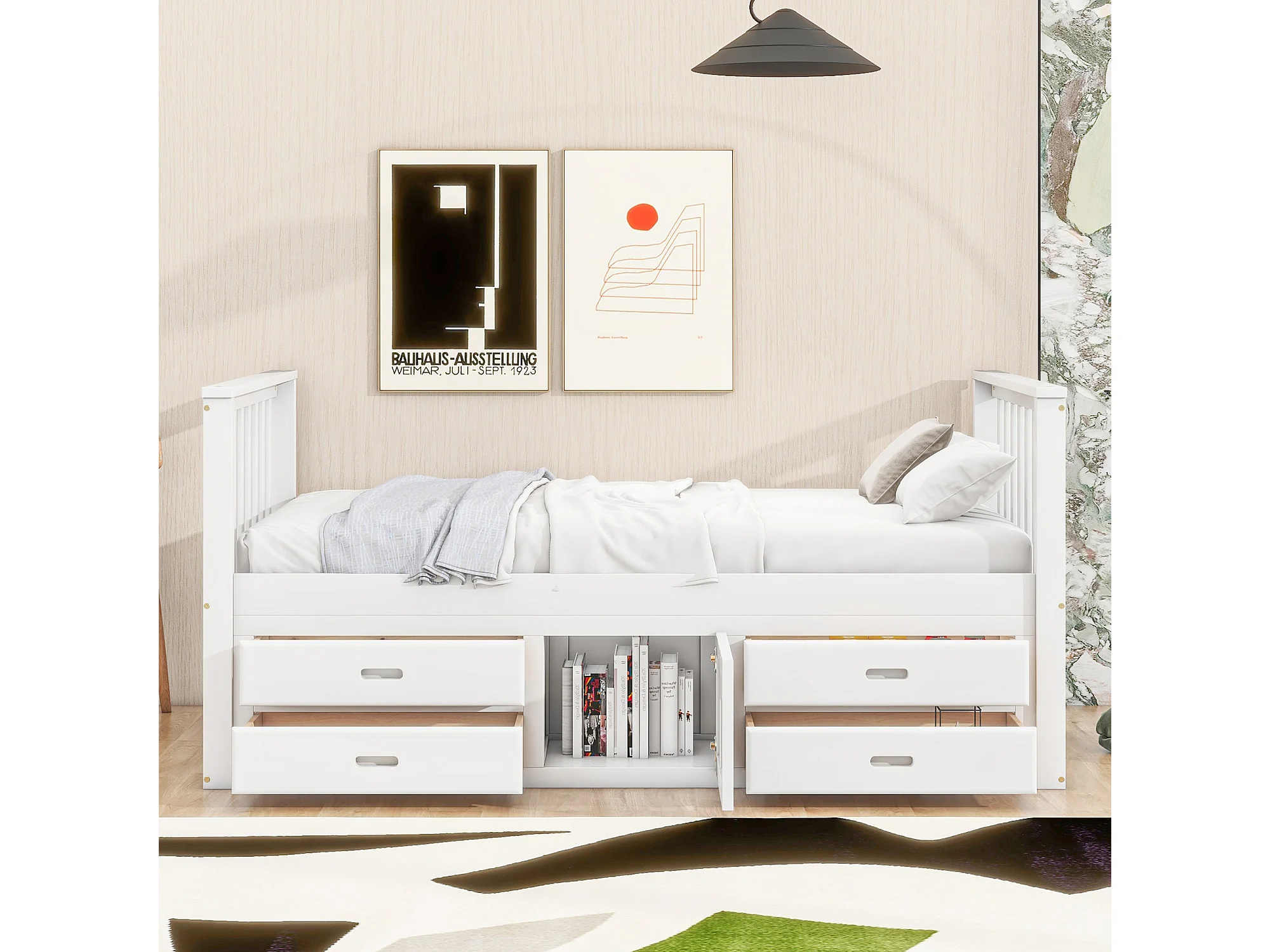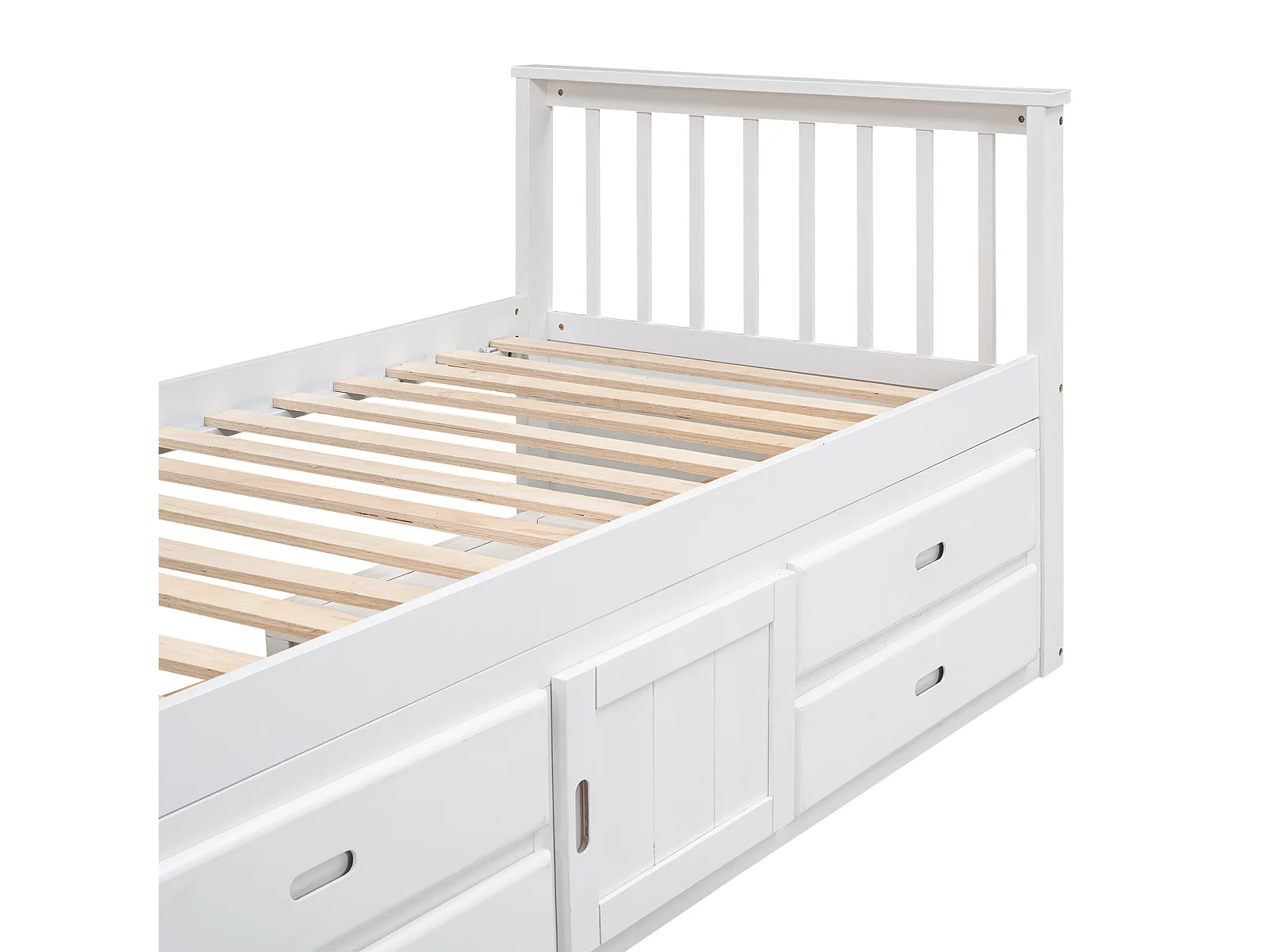 Cama infantil con plataforma de madera blanca, 4 cajones y armario de almacenamiento 90x200cm LENDIEH
