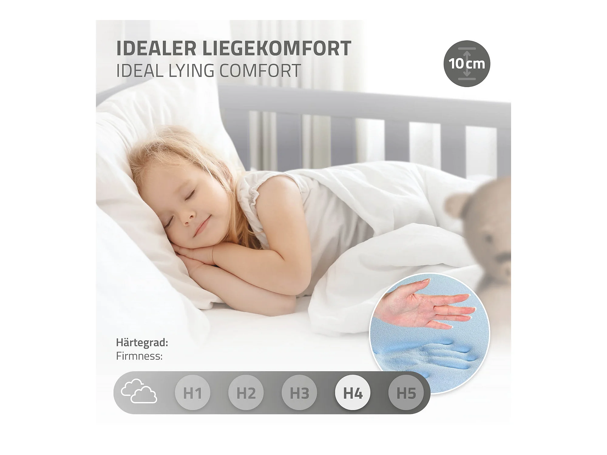 ML-Design Cama infantil 70 x 140 cm color gris con colchón de espuma fría y somier estructura de listones con techo forma de casa