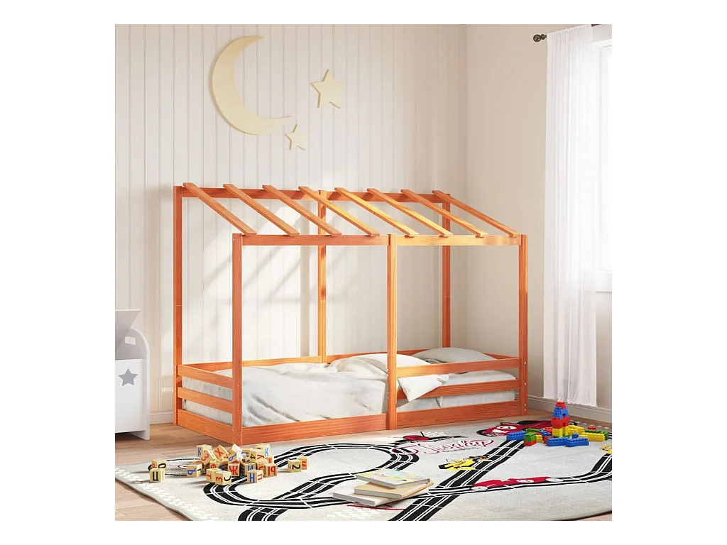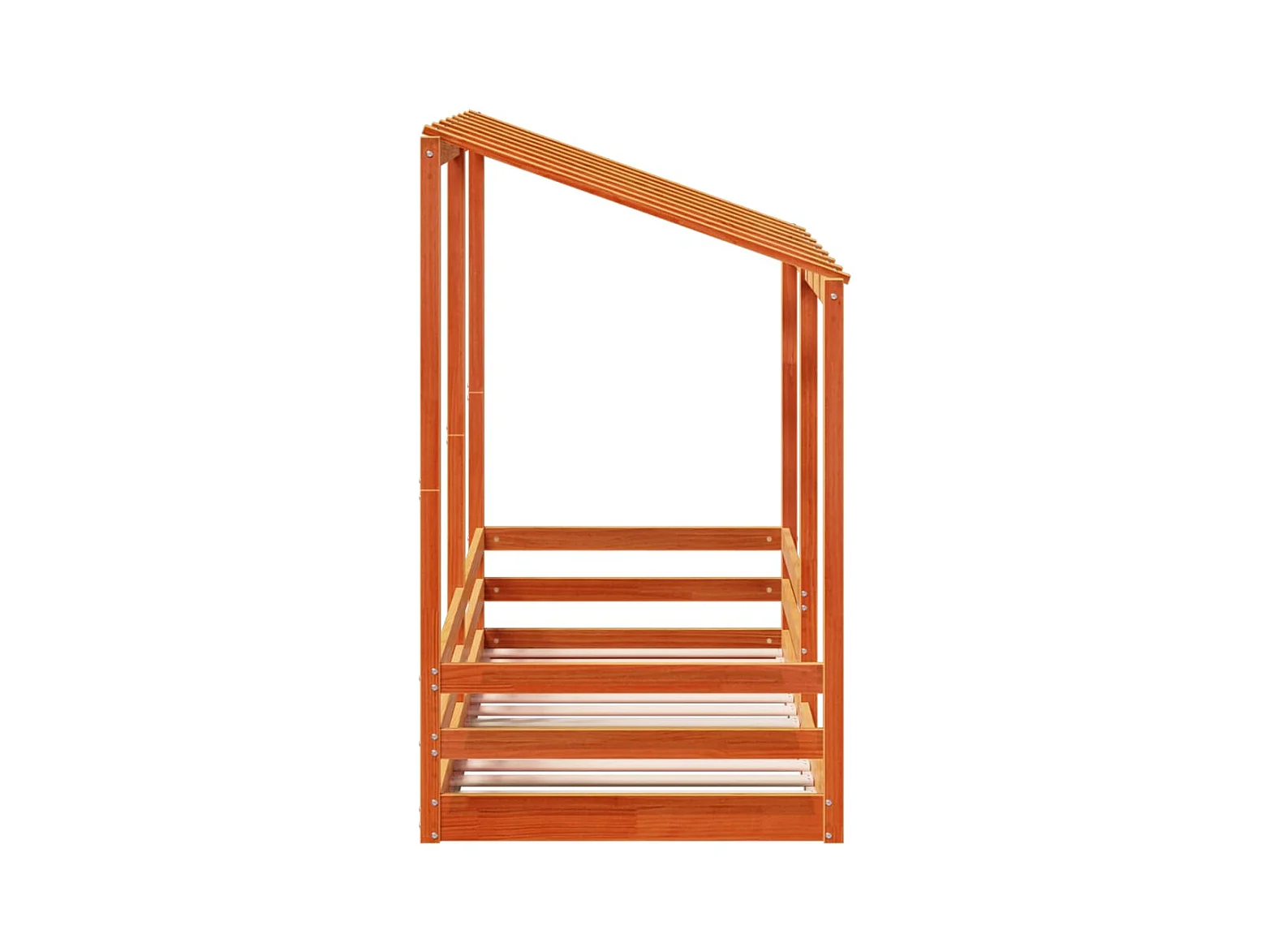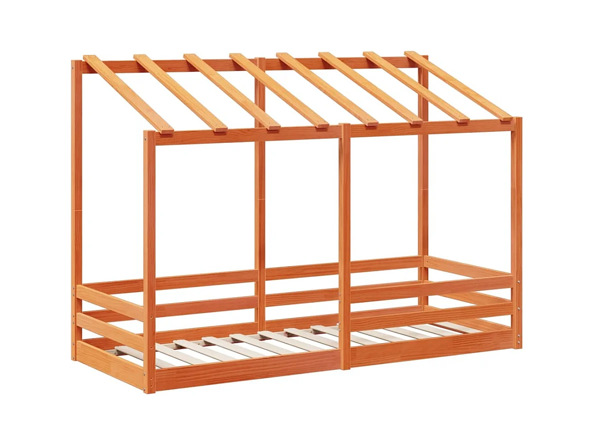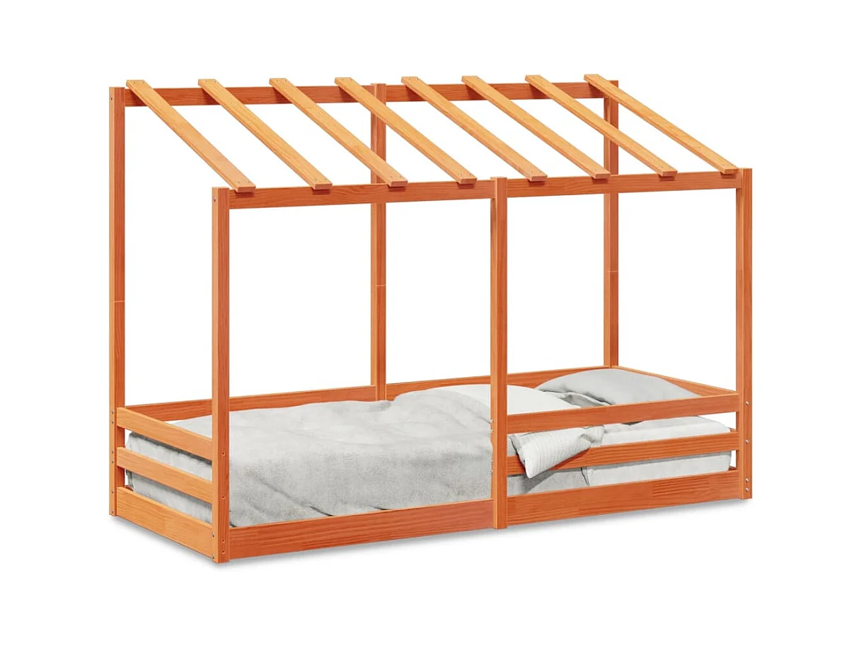 Cama infantil con techo madera maciza pino marrón 90x190 cm ES651187