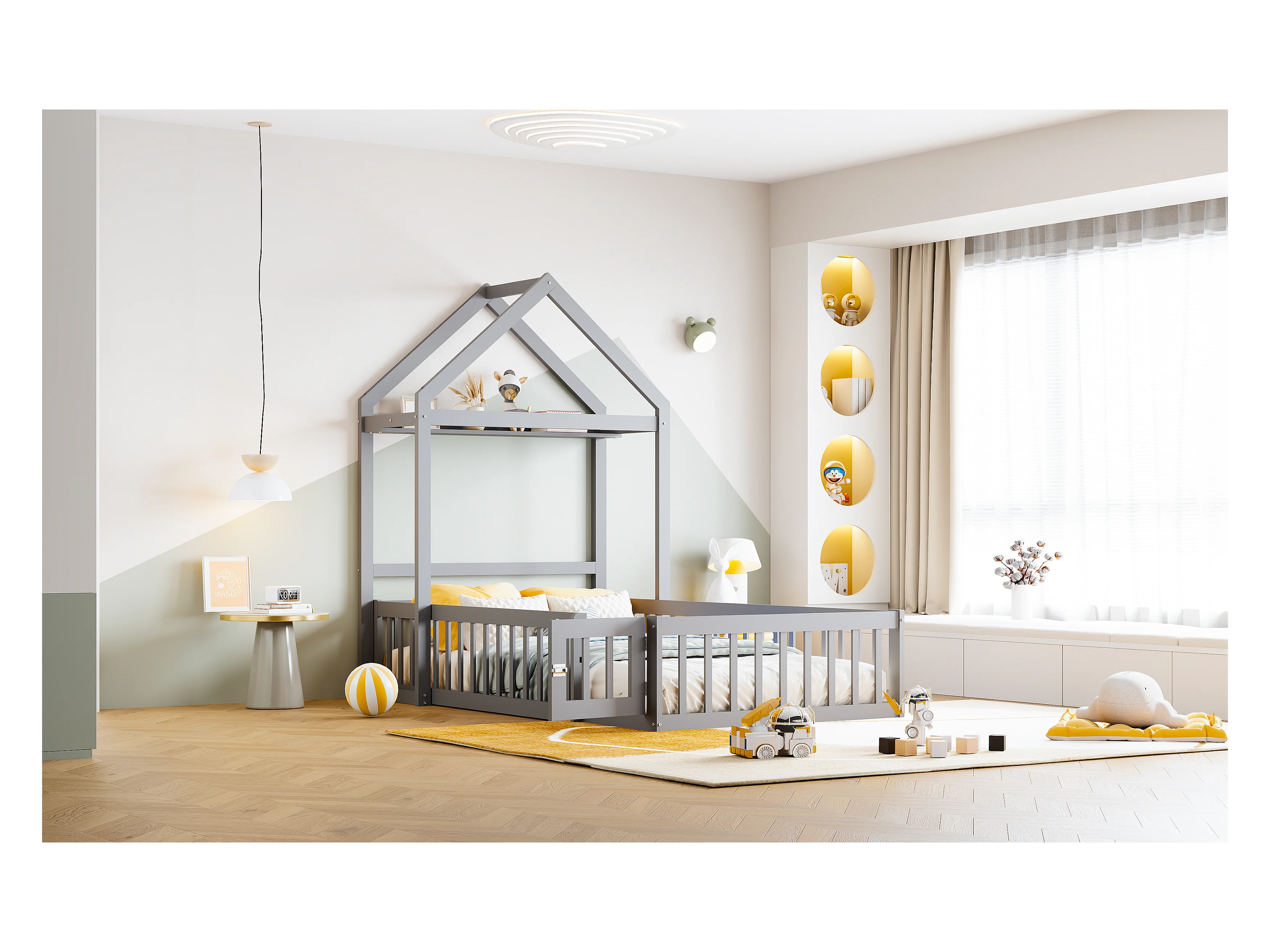 Cama infantil de 90 x 200 cm con espacio de almacenaje, barreras y puertas de seguridad, color gris