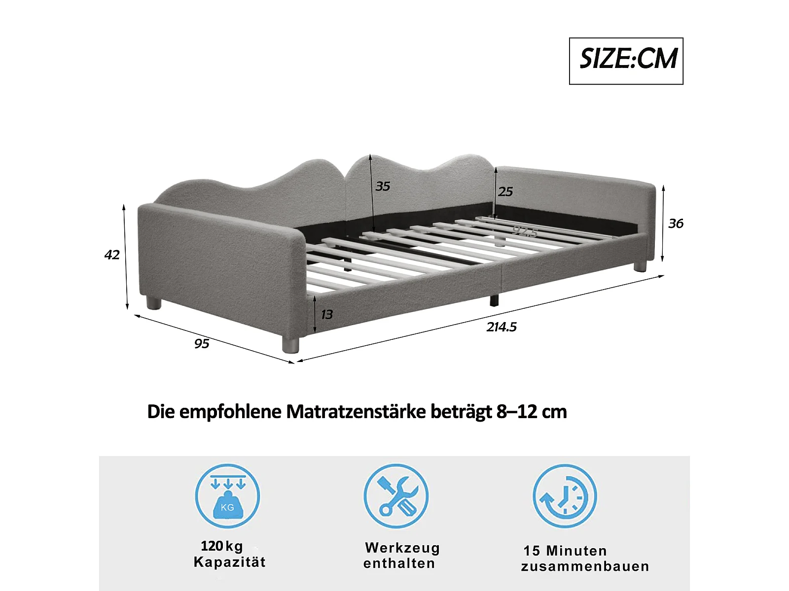 Sofá cama multifuncional de 90x200 cm en terciopelo gris, con somier de láminas – Cama práctica y cómoda para adultos o niños