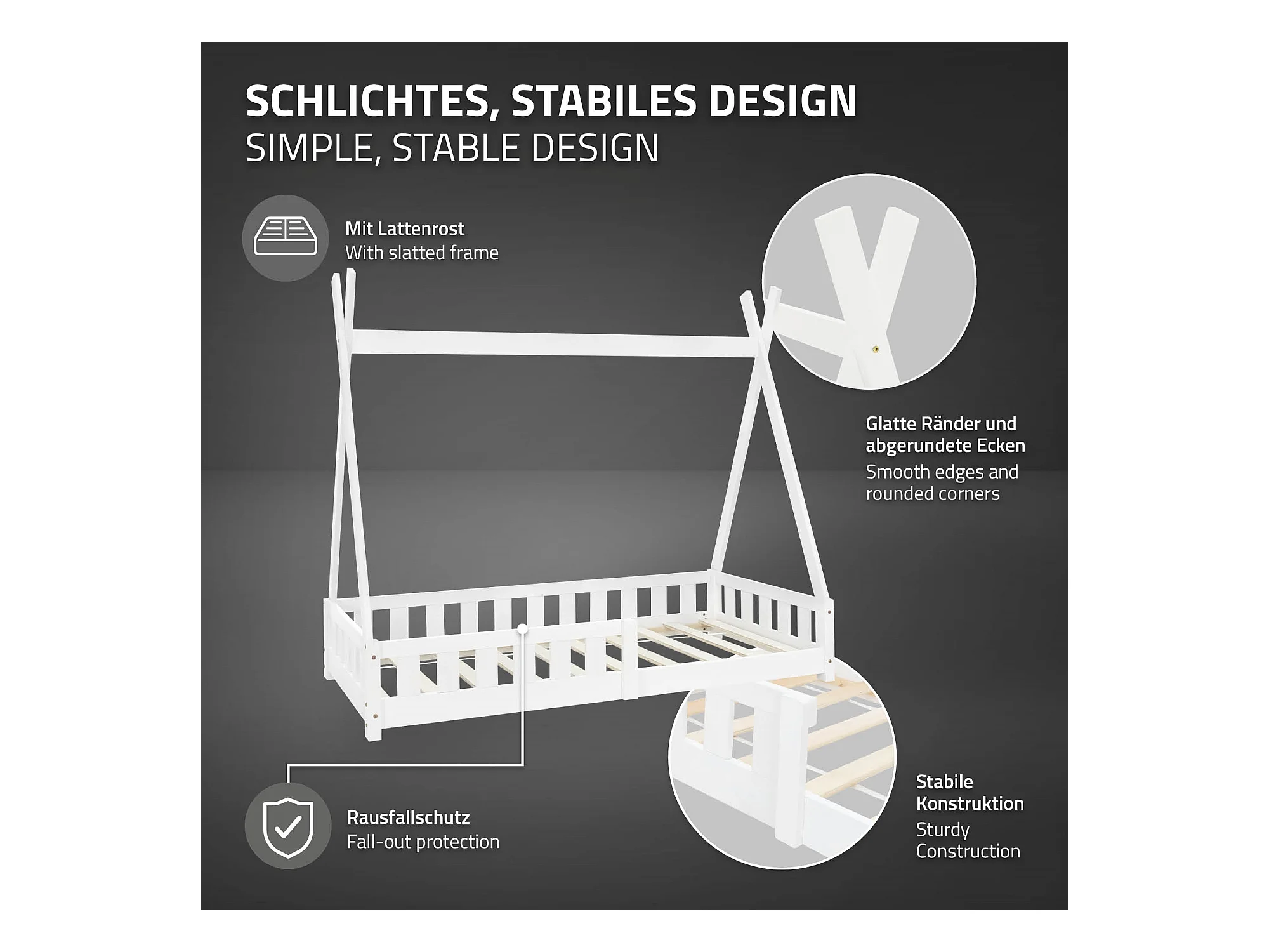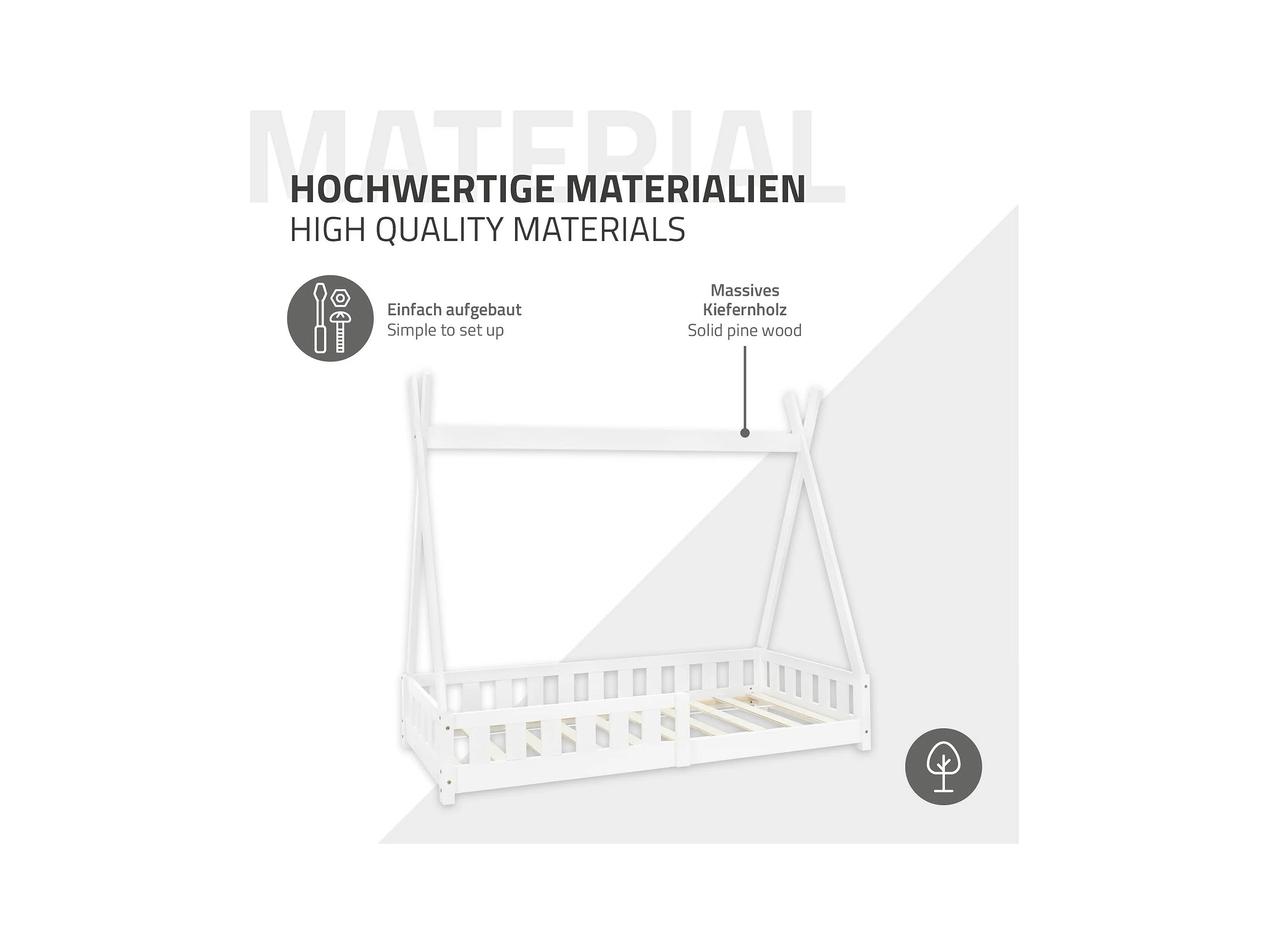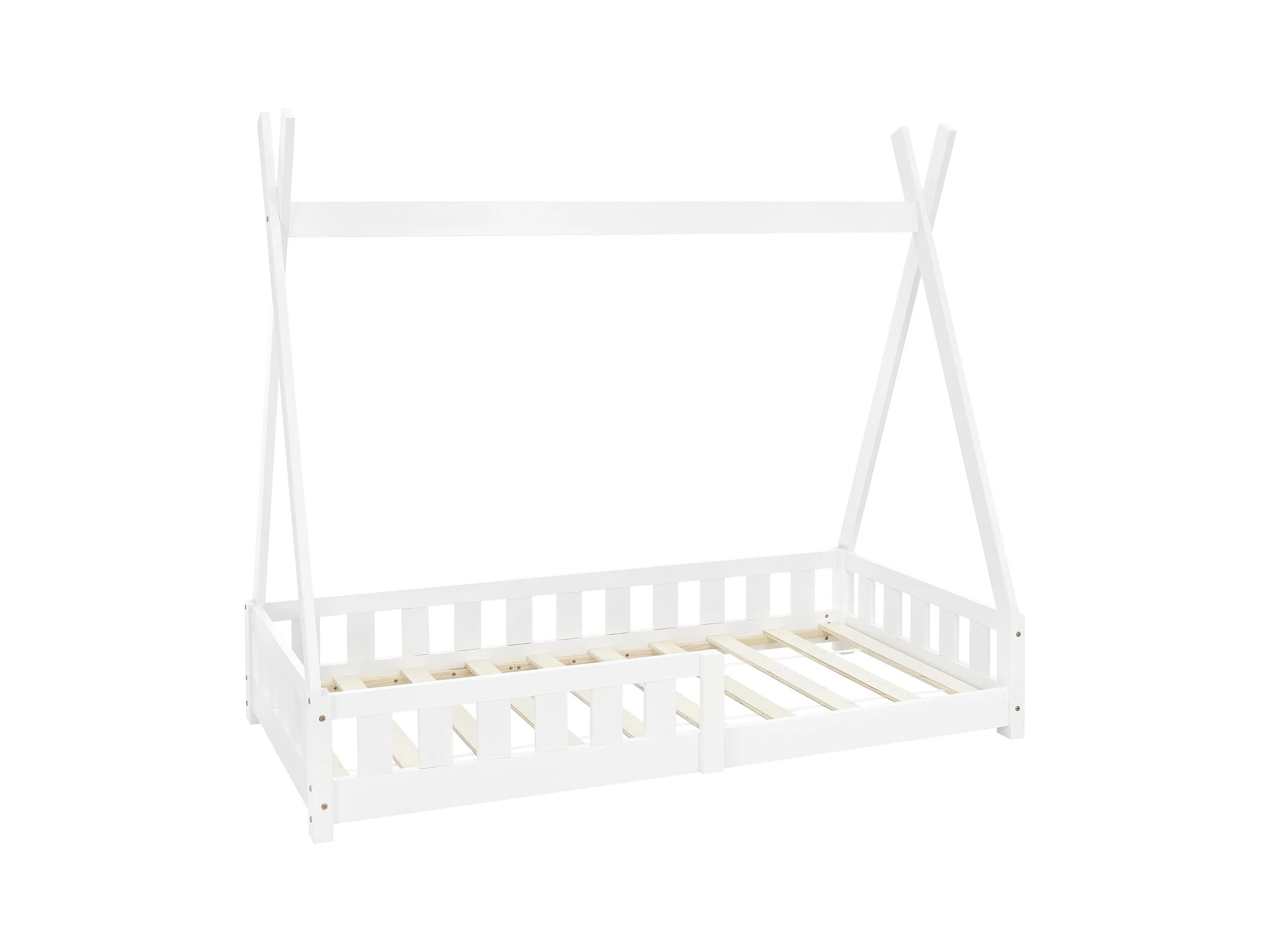 ML-Design Cama infantil tipi 80x160cm color blanco con protección anticaída y somier mobiliario con estructura de listones madera de pino maciza
