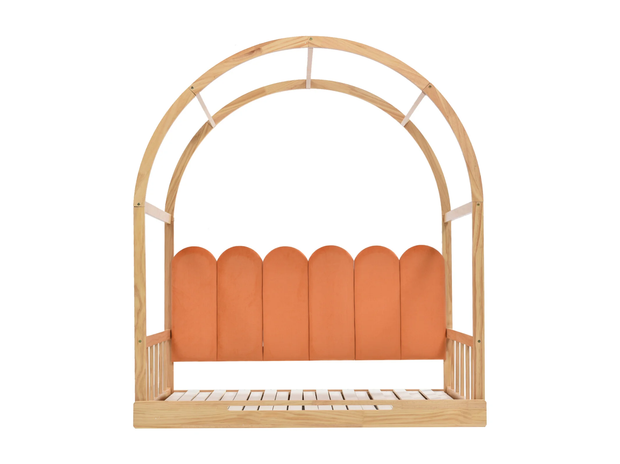 Cama nido 140x100/200cm de madera maciza - con cabecero de terciopelo y somier de láminas - Naranja