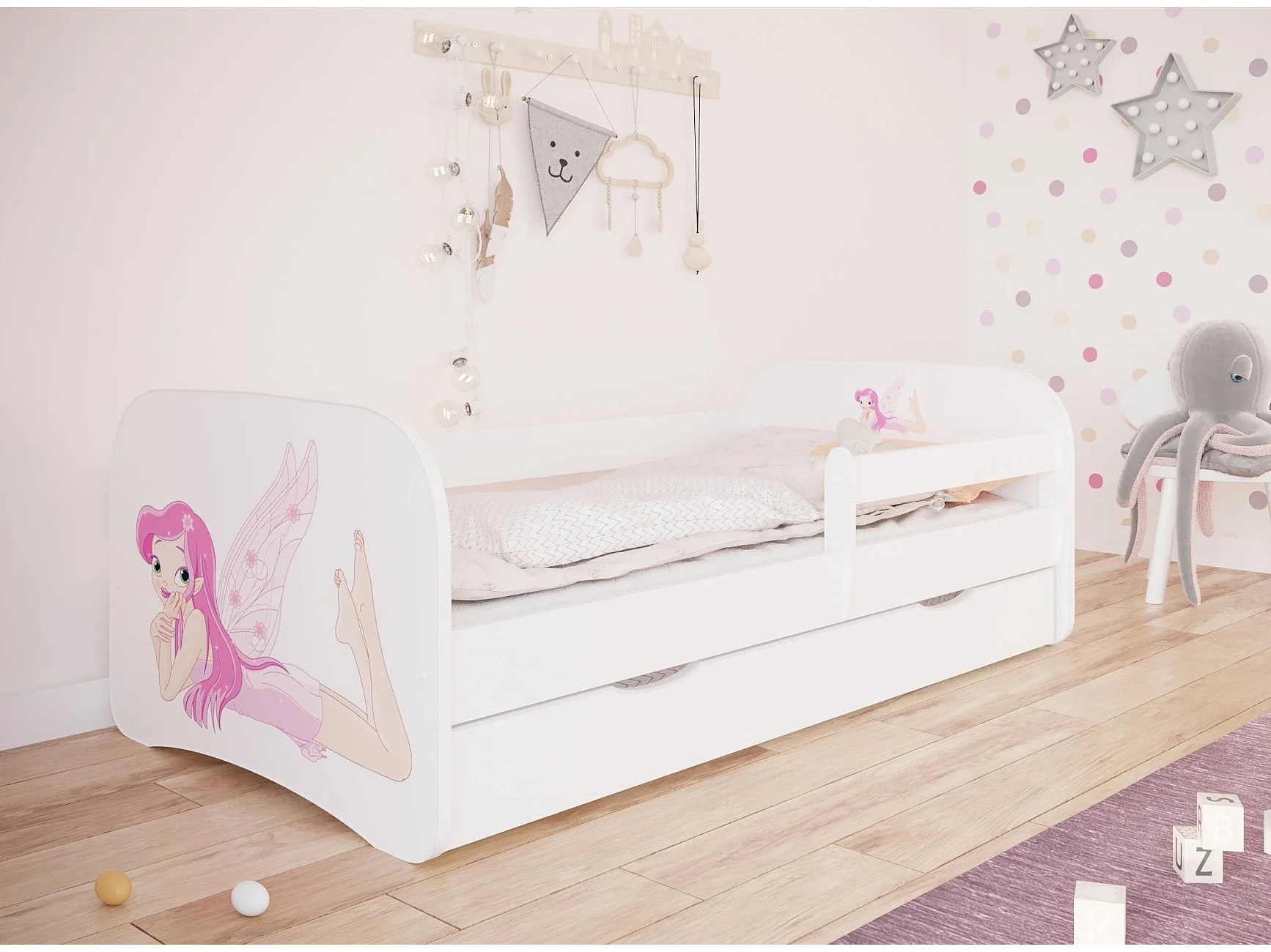 Cama infantil Little Fairy blanca con somieres y barrera de seguridad extraíble Drimy-Colchones de espuma-Ropa de cama 70x140 cm-Cajones Con cajón