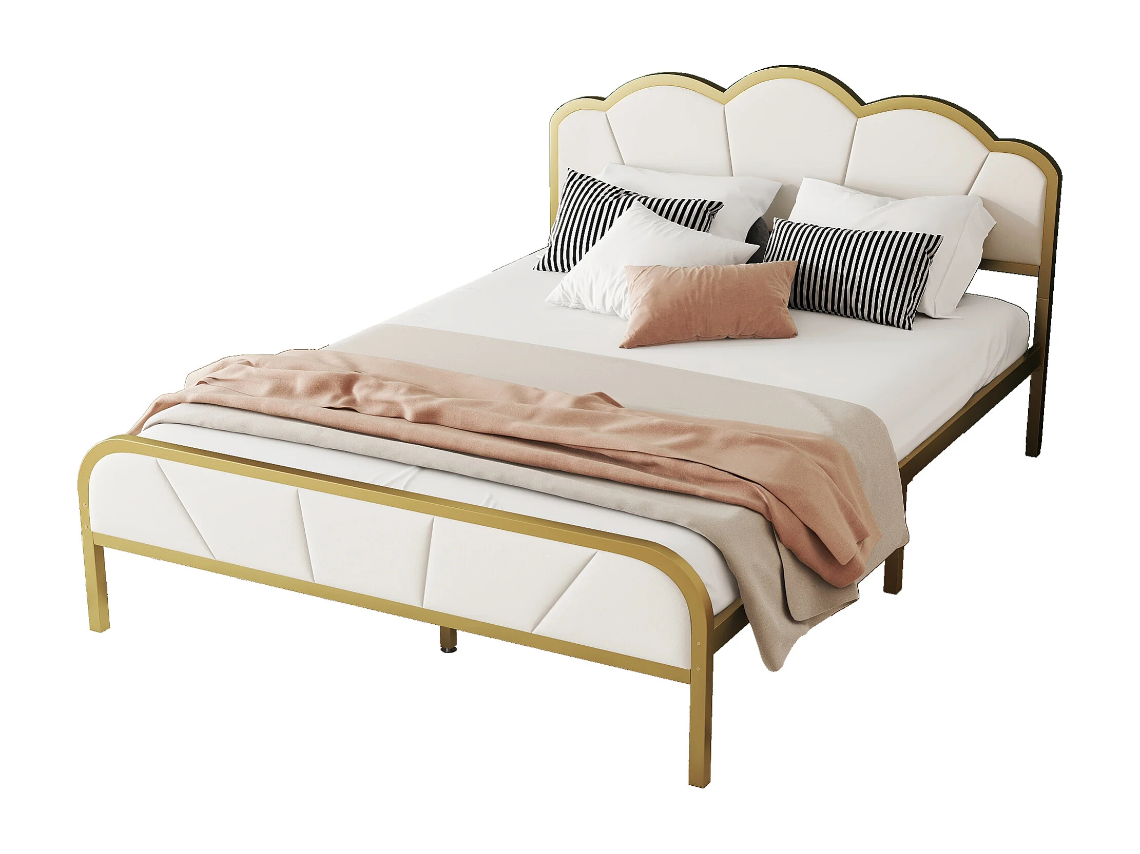 Cama plana de 140*200 cm con marco de hierro, forma de nube, marco dorado, diseño minimalista, dorado + blanco