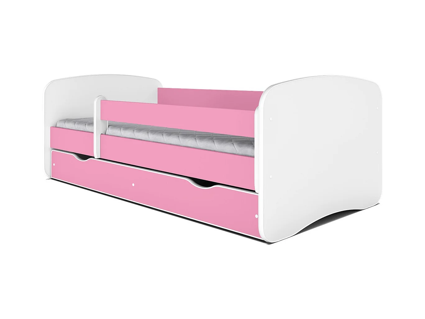 Cama infantil rosa con somieres y barrera de seguridad extraíble Drimy-Ropa de cama 70x140 cm-Cajones Con cajón