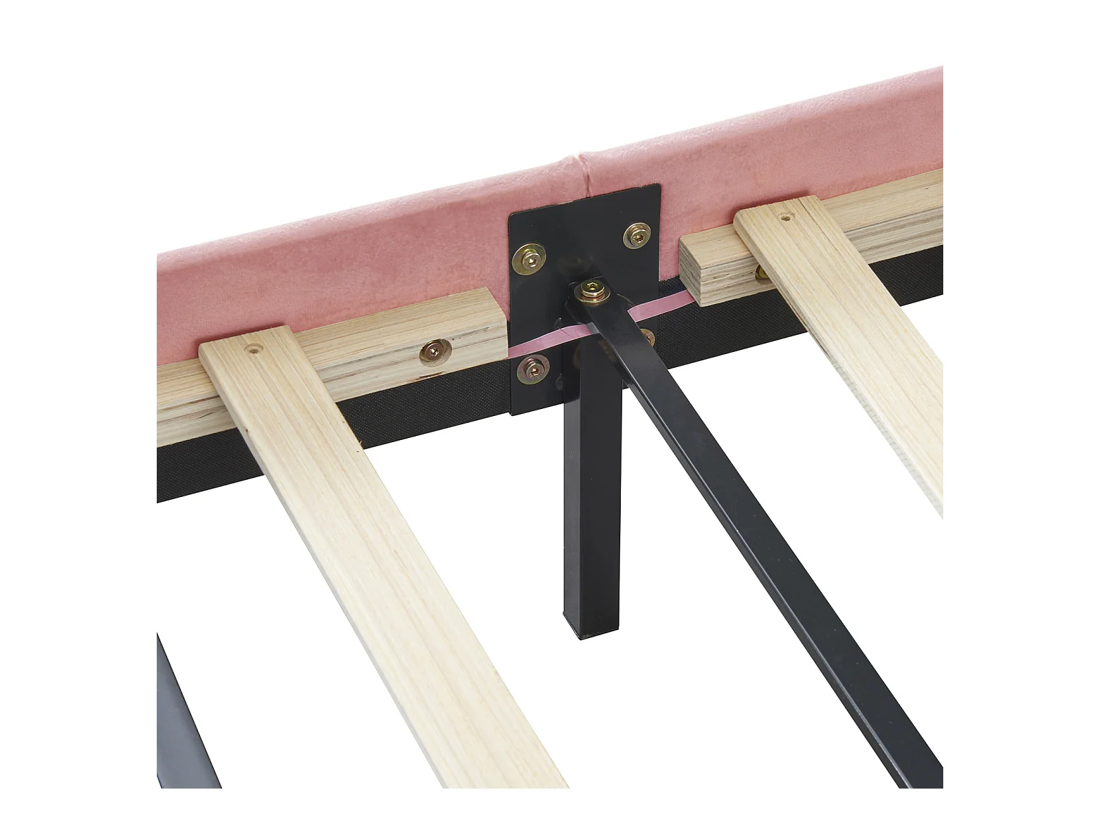 Cama doble de 140 x 200 cm, terciopelo rosa, con cama nido y somier (sin colchón)