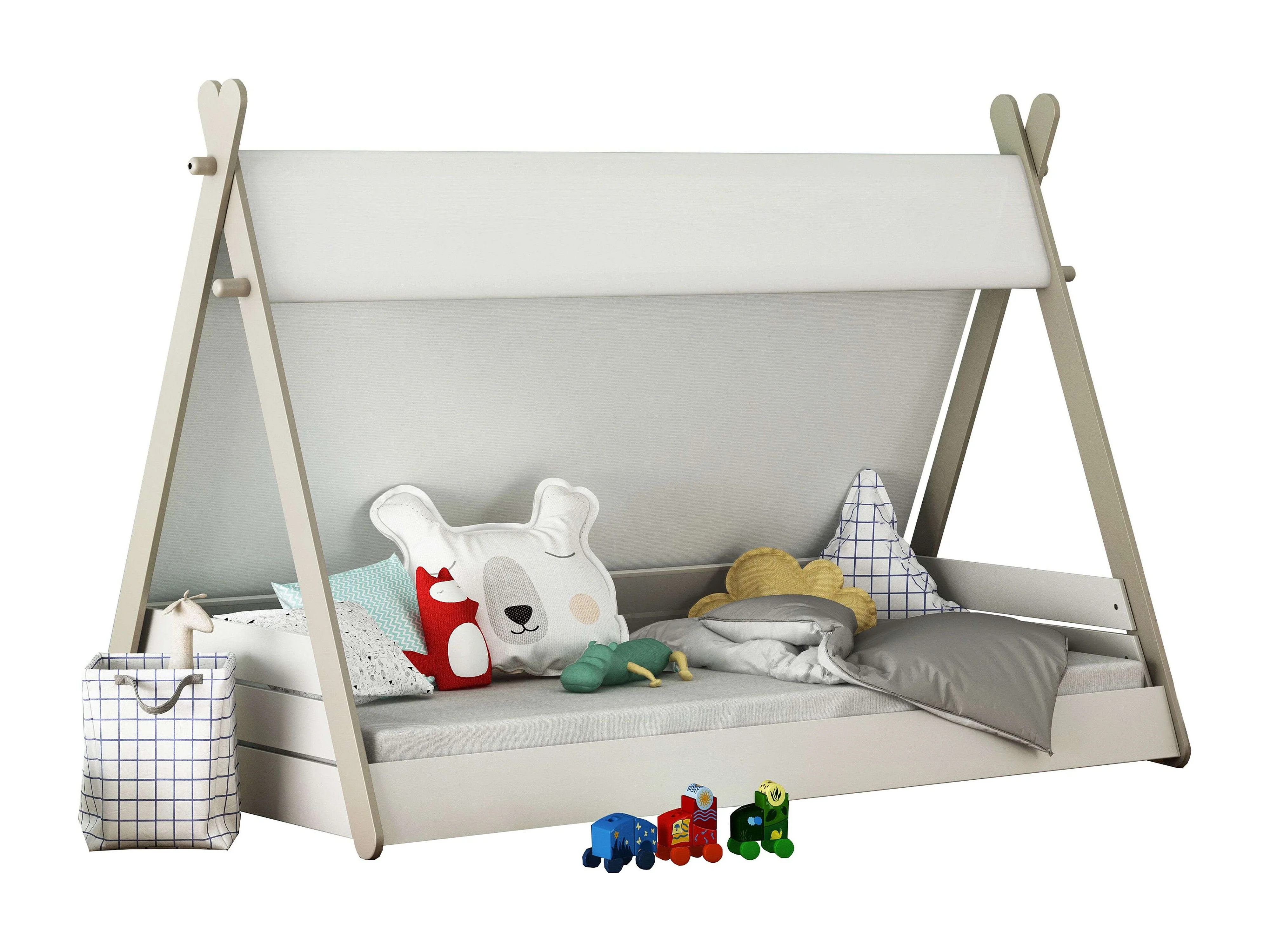 Cama infantil - TOTEM - Blanco y Beige - 90 x 200 cm - DEMEYERE