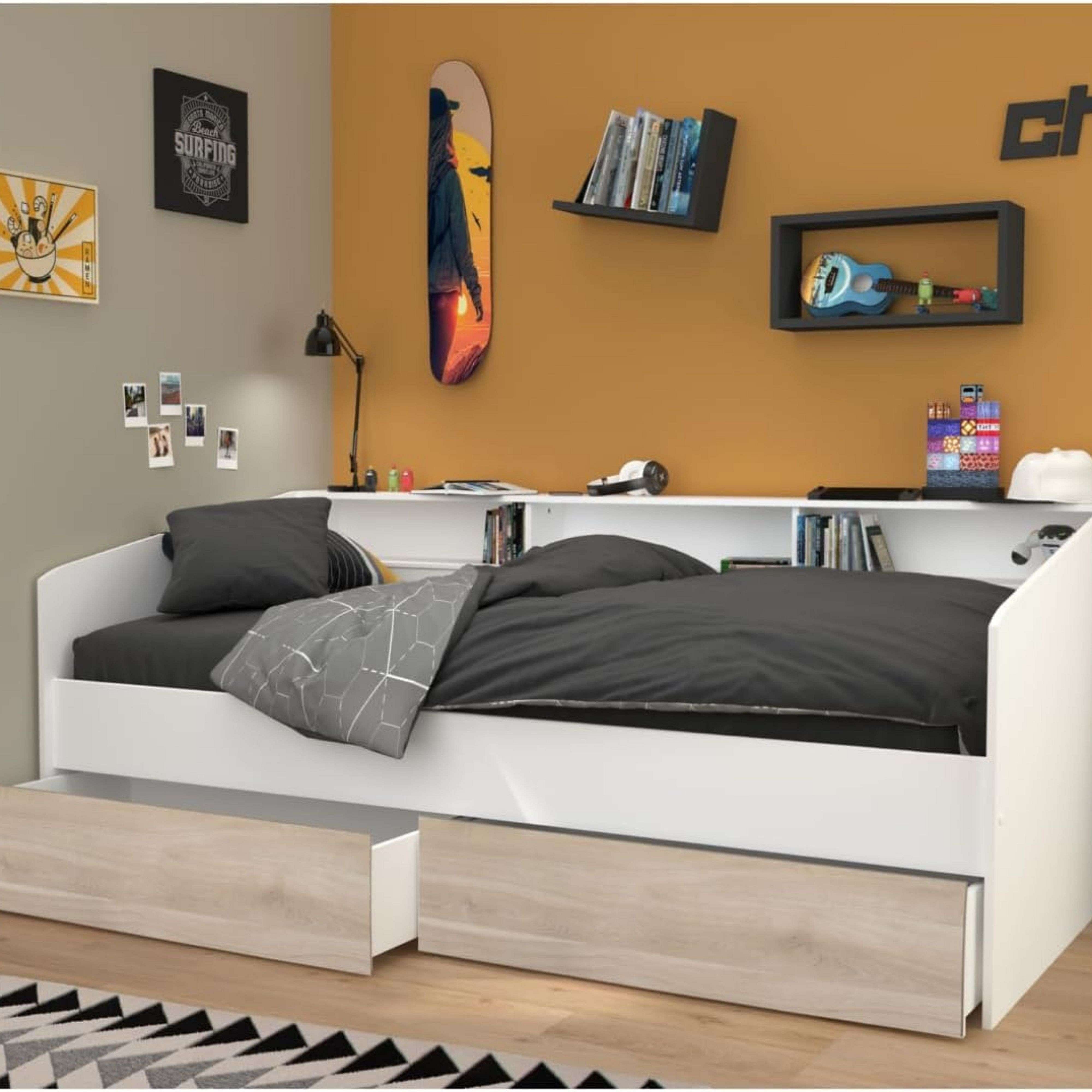 Cama Juvenil Style Blanco con cajones Roble Japonés 90x190-200 cm