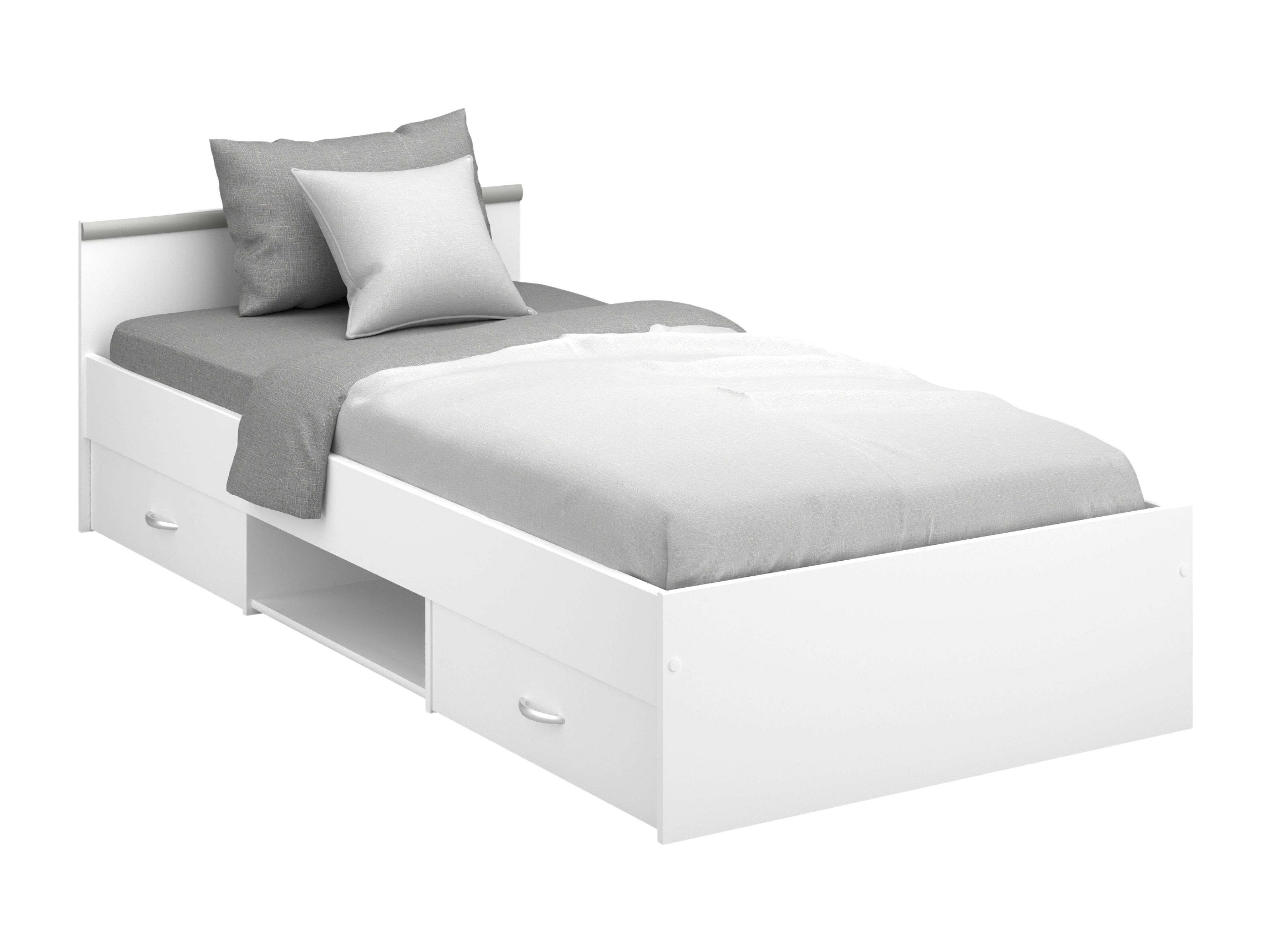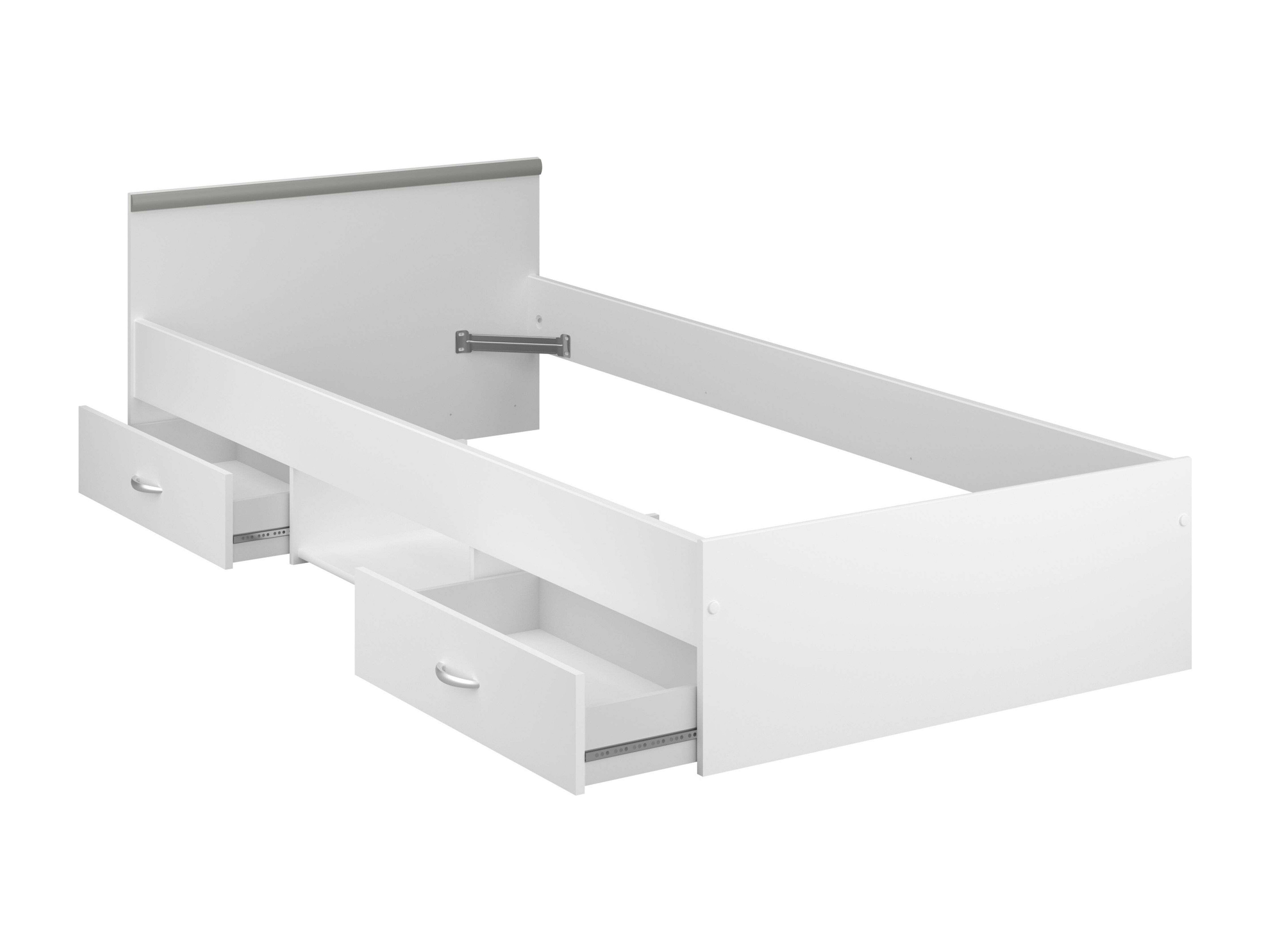 Cama con cabecero y 2 cajones - 90 x 200 cm - pino - somier de láminas - blanco