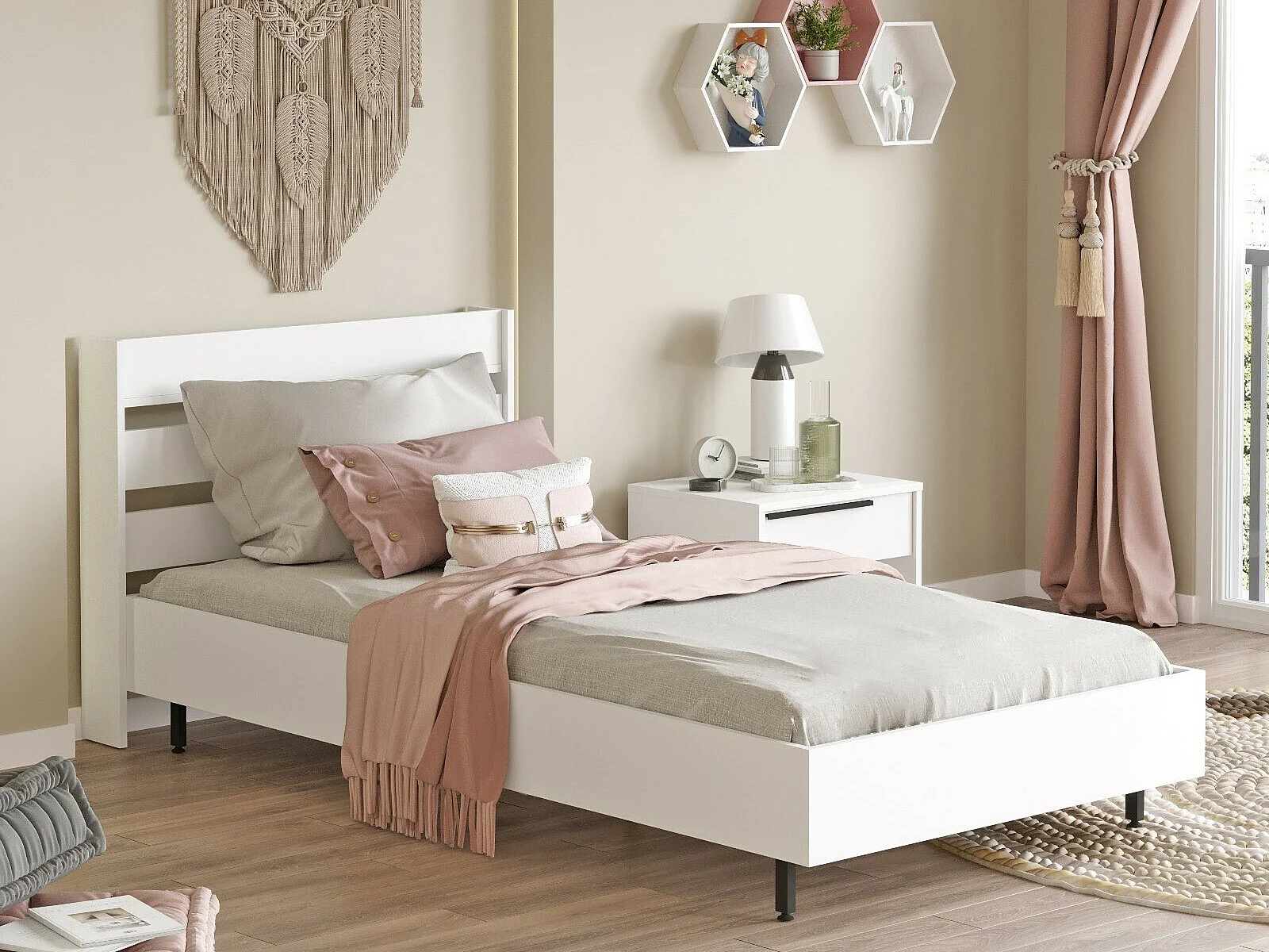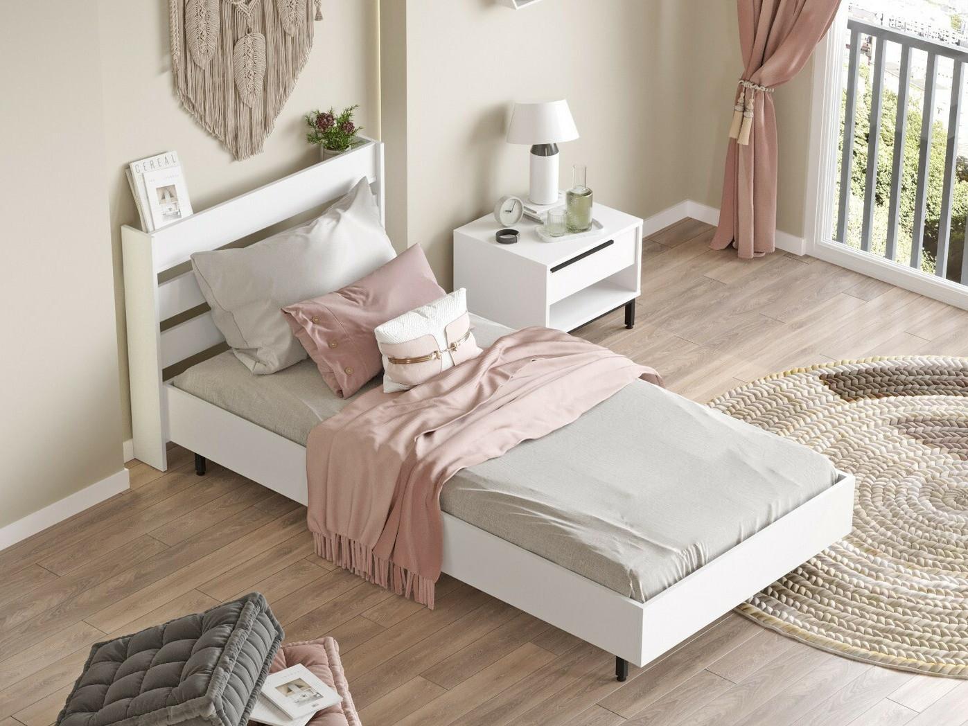 Cama Kailua AE112, Individuales, Blanco, 90x200, Aglomerado laminado, 109x206x86cm