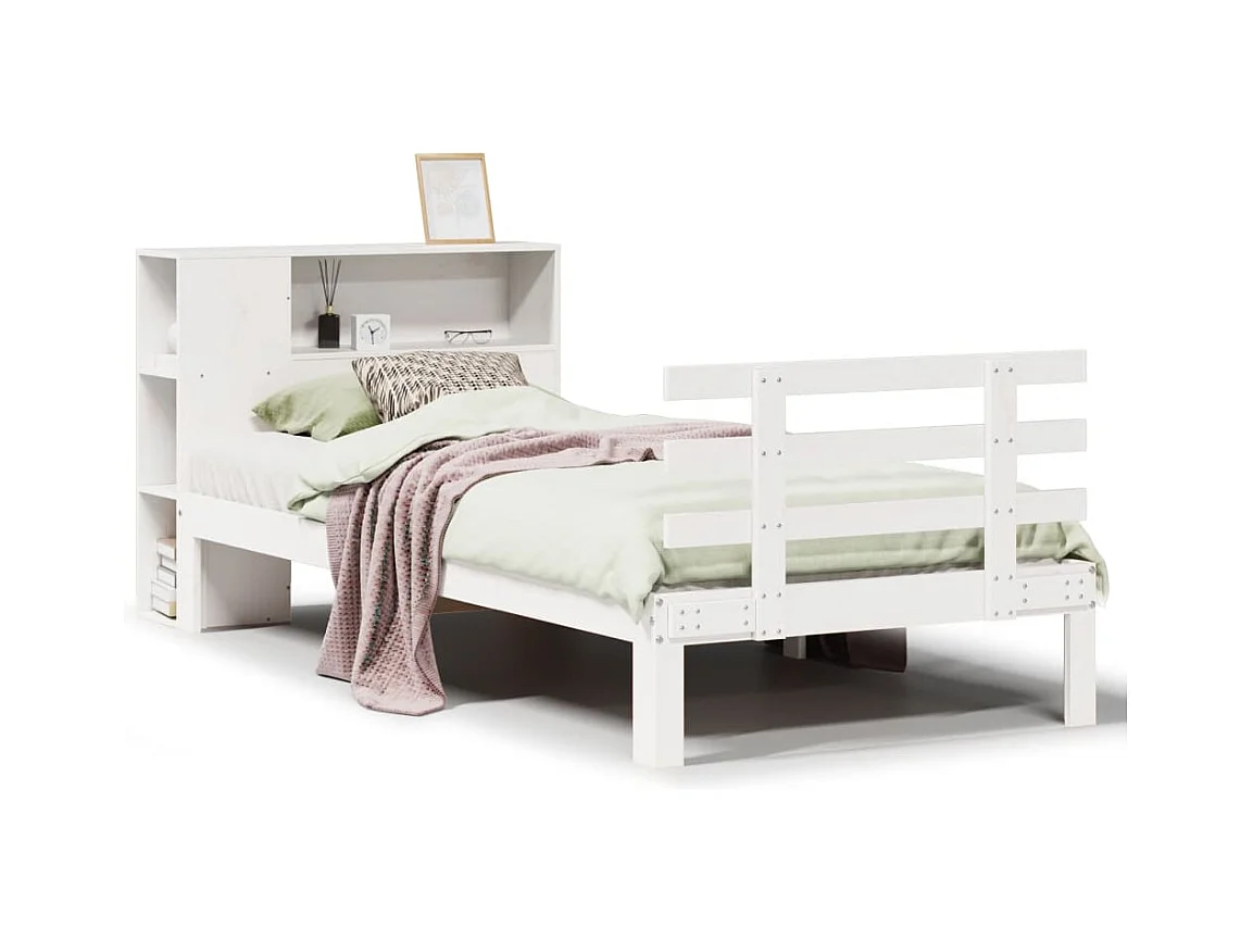 Cama librería blanca sin colchón 100x200 cm madera maciza de pino