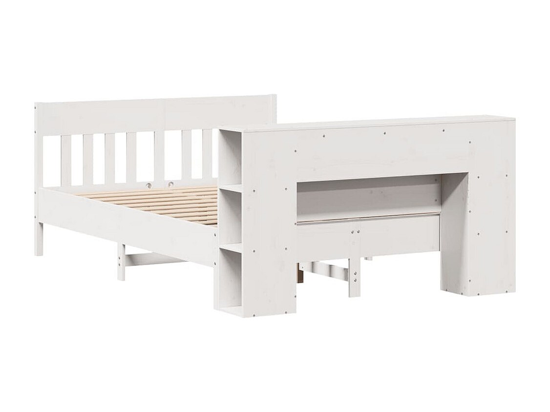 Cama con estantería sin colchón madera maciza blanca 135x190 cm