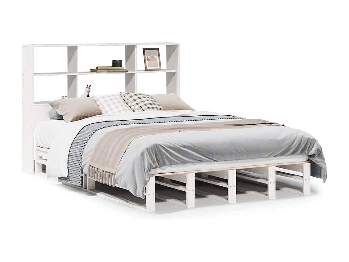 Cama librería blanca sin colchón 140x200 cm madera maciza