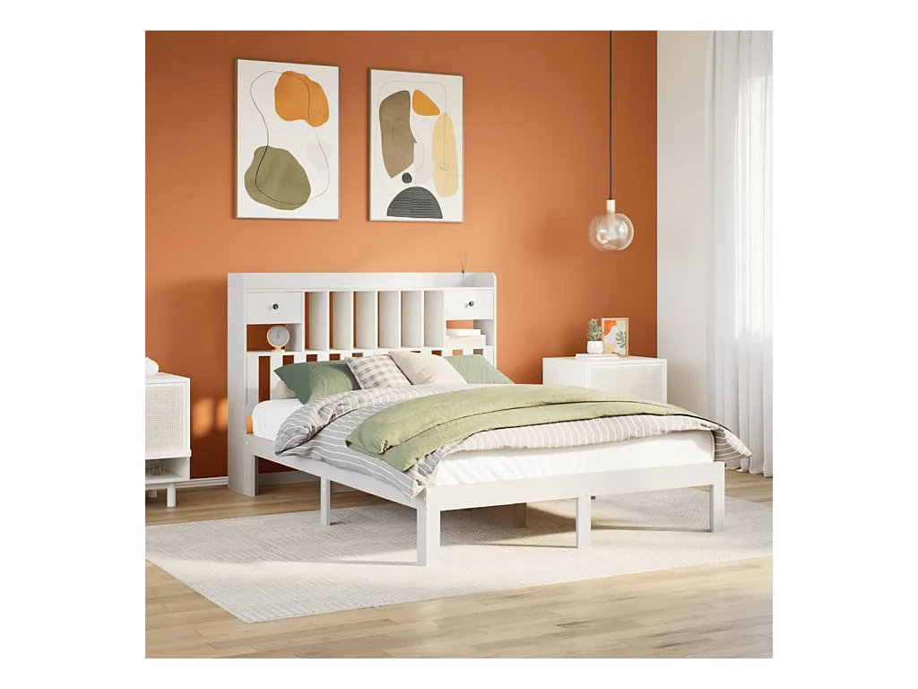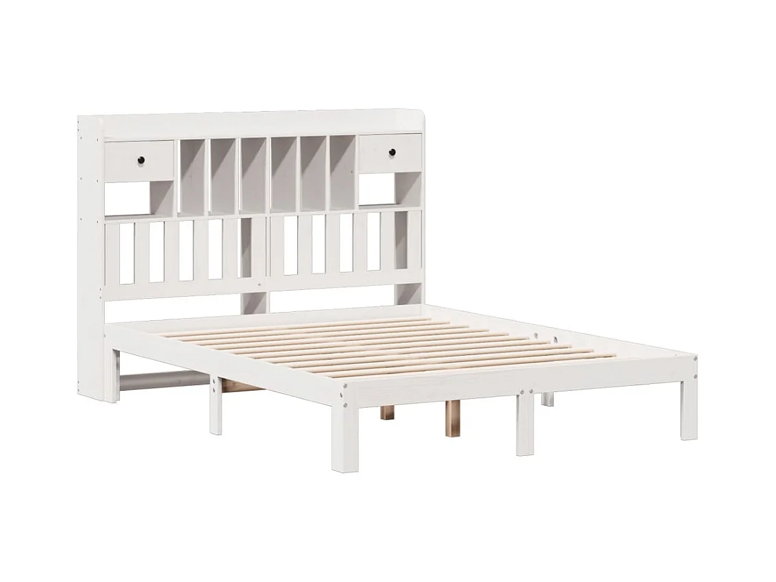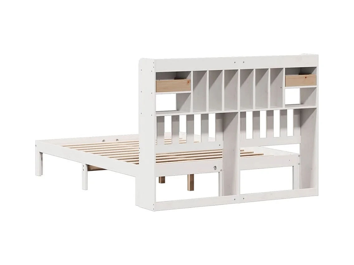 Cama librería blanca sin colchón 140x200 cm madera maciza de pino