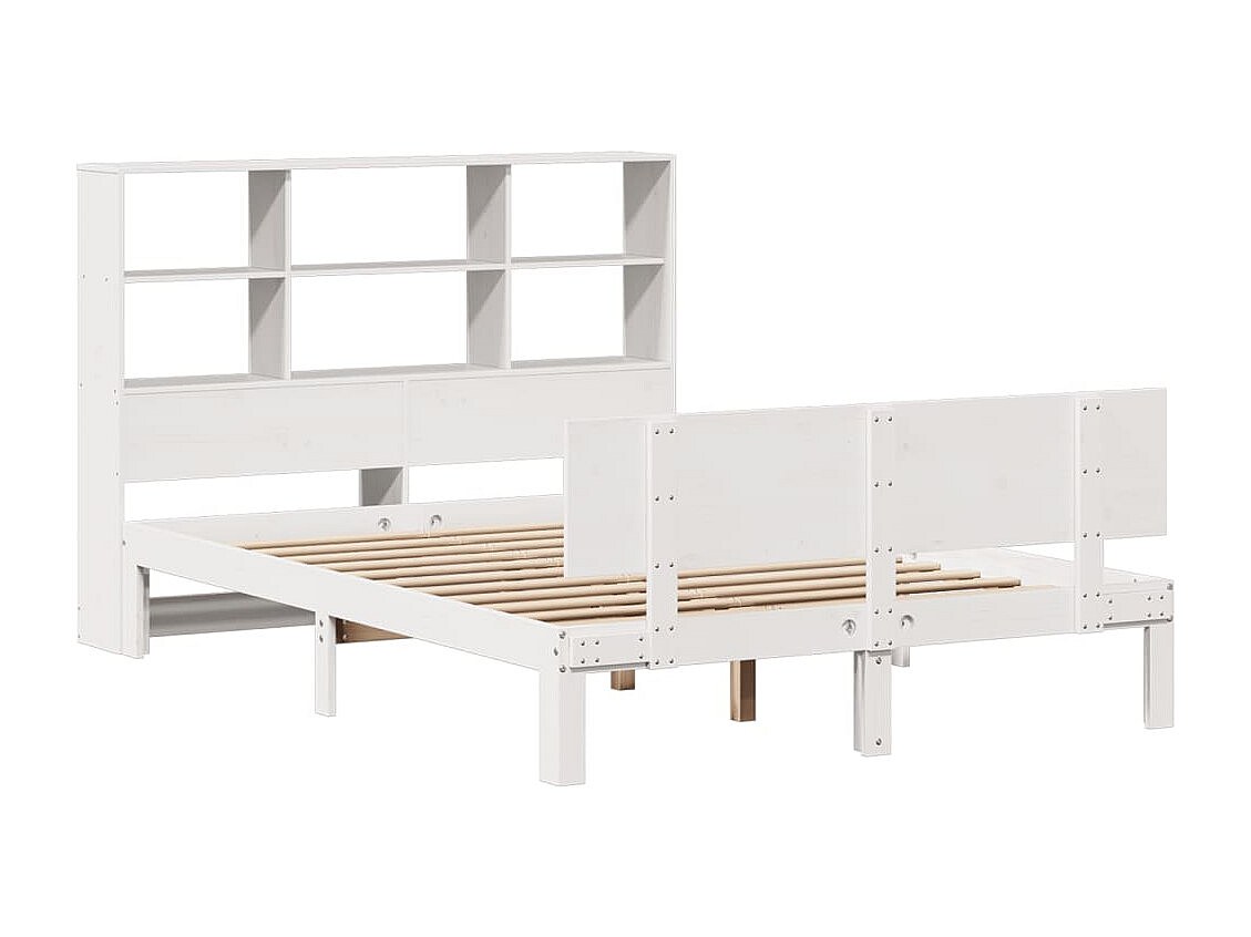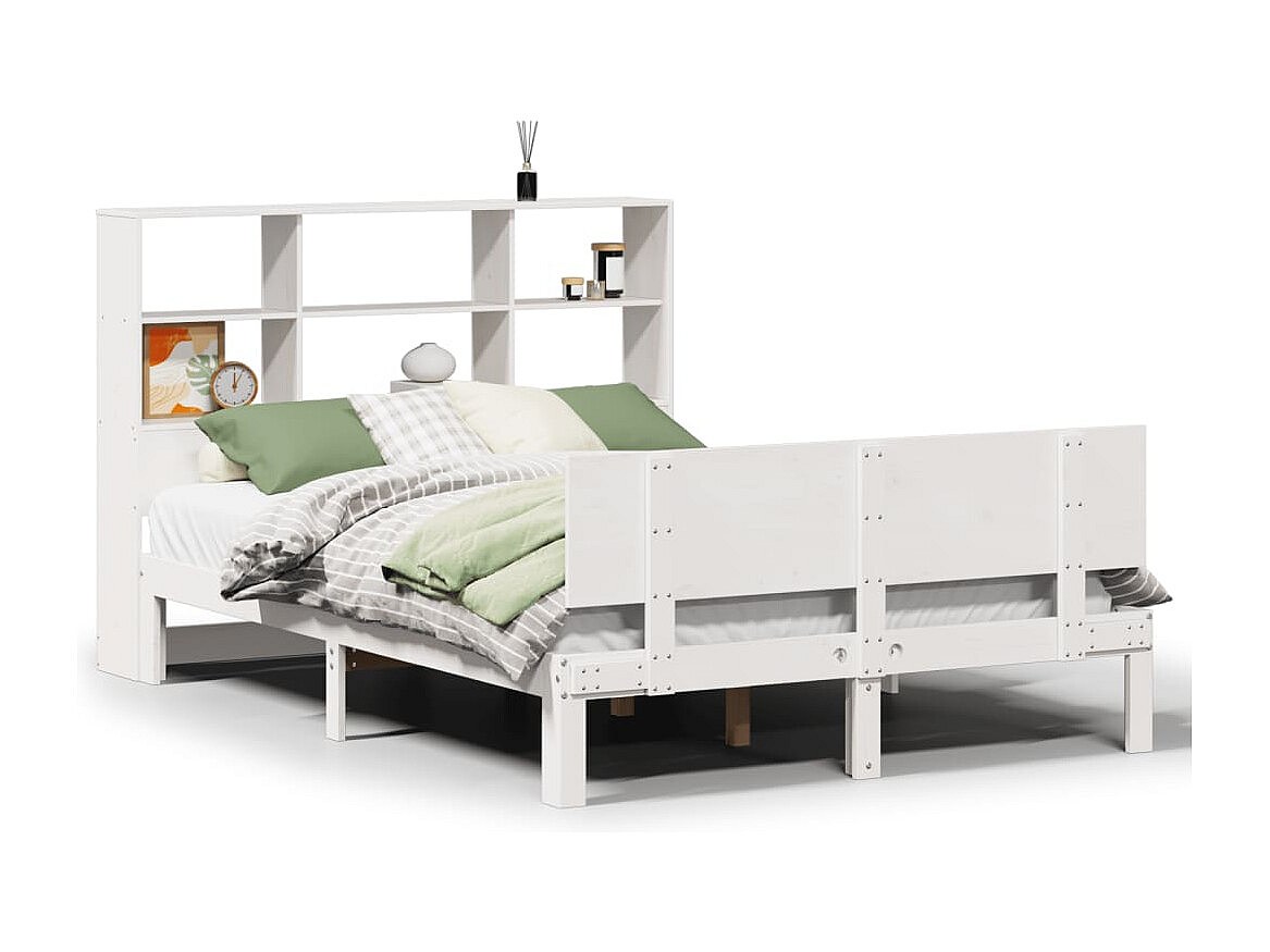 Cama librería blanca sin colchón 140x200 cm madera maciza de pino