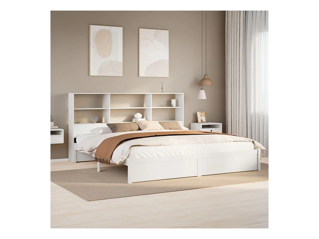 Cama librería blanca sin colchón 180x200 cm madera maciza de pino