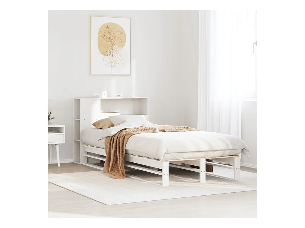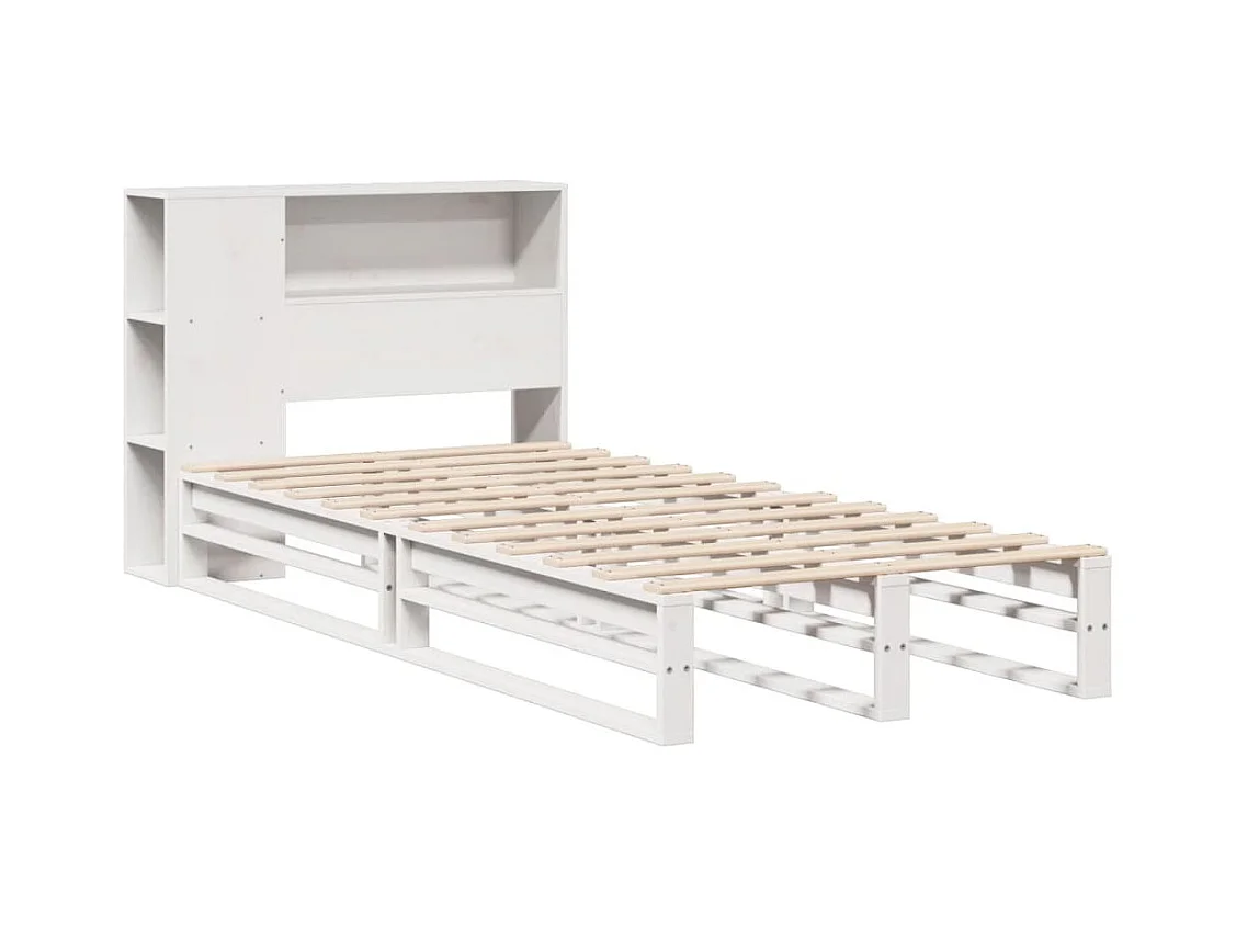 Cama librería blanca sin colchón 75x190cm madera maciza de pino