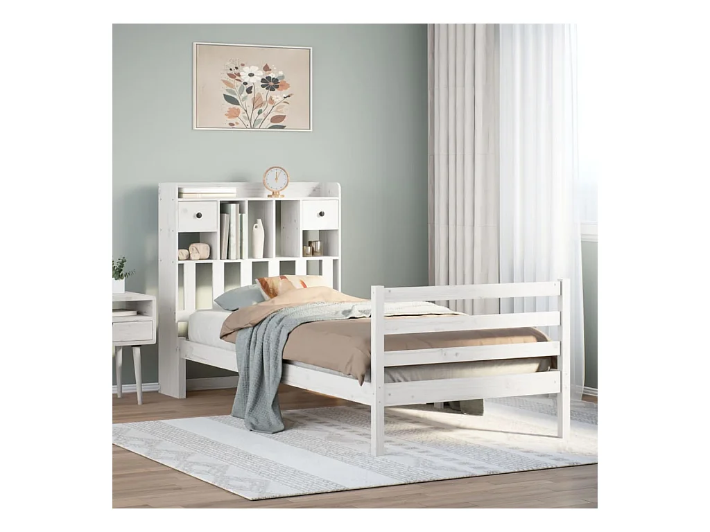 Cama librería blanca sin colchón 75x190cm madera maciza de pino