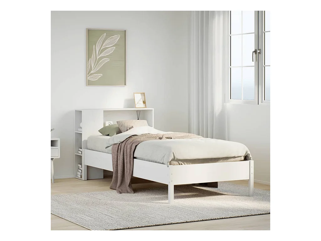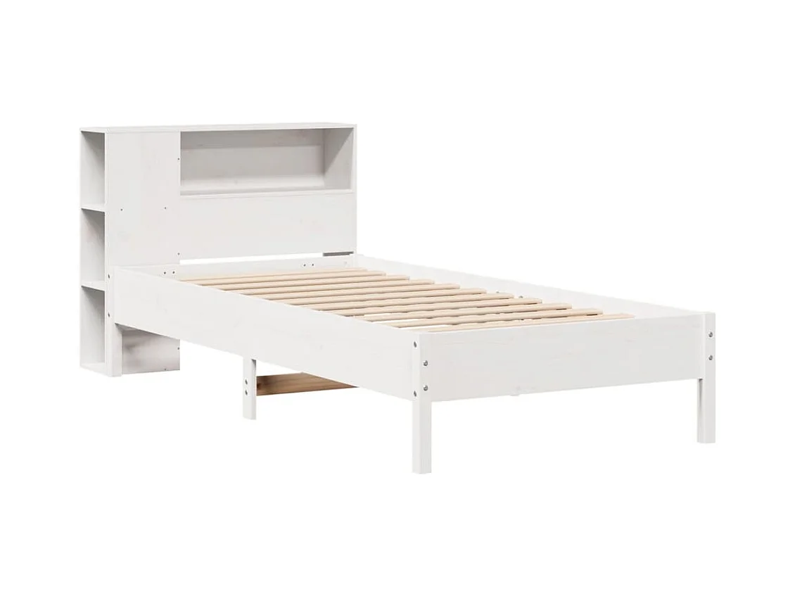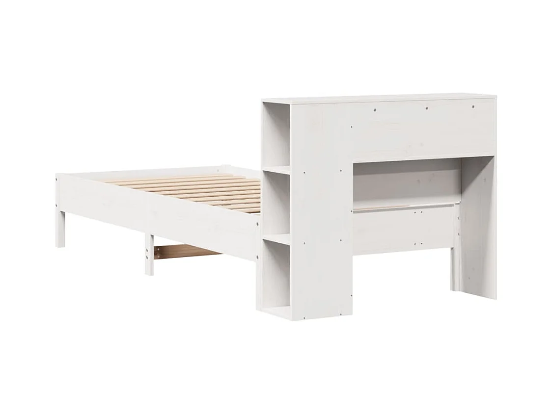 Cama librería blanca sin colchón 75x190cm madera maciza de pino