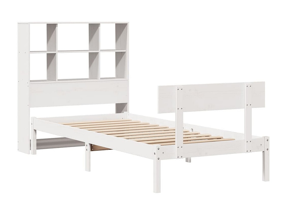 Cama librería blanca sin colchón 90x200cm madera maciza de pino