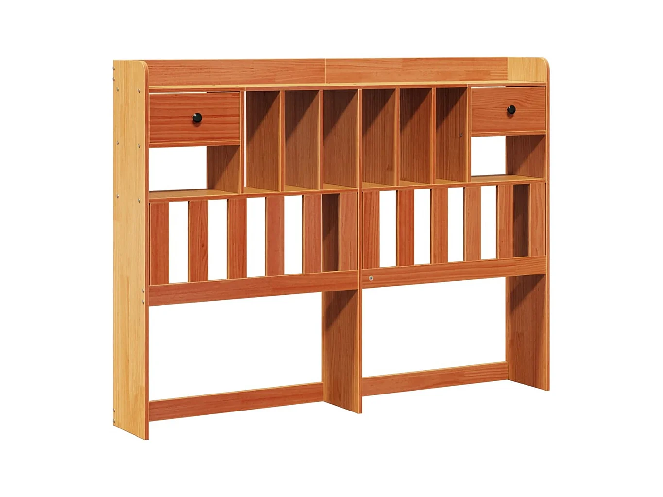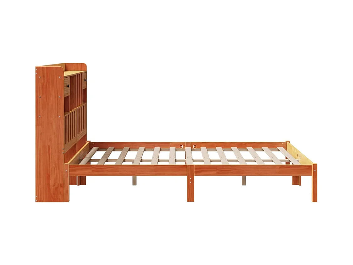 Cama librería sin colchón, color marrón cera, 160x200 cm, pino macizo