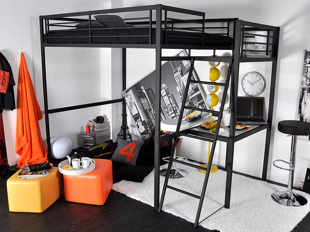 Cama alta CASUAL 140x190 cm - Plataforma para escritorio + color antracita + colchón
