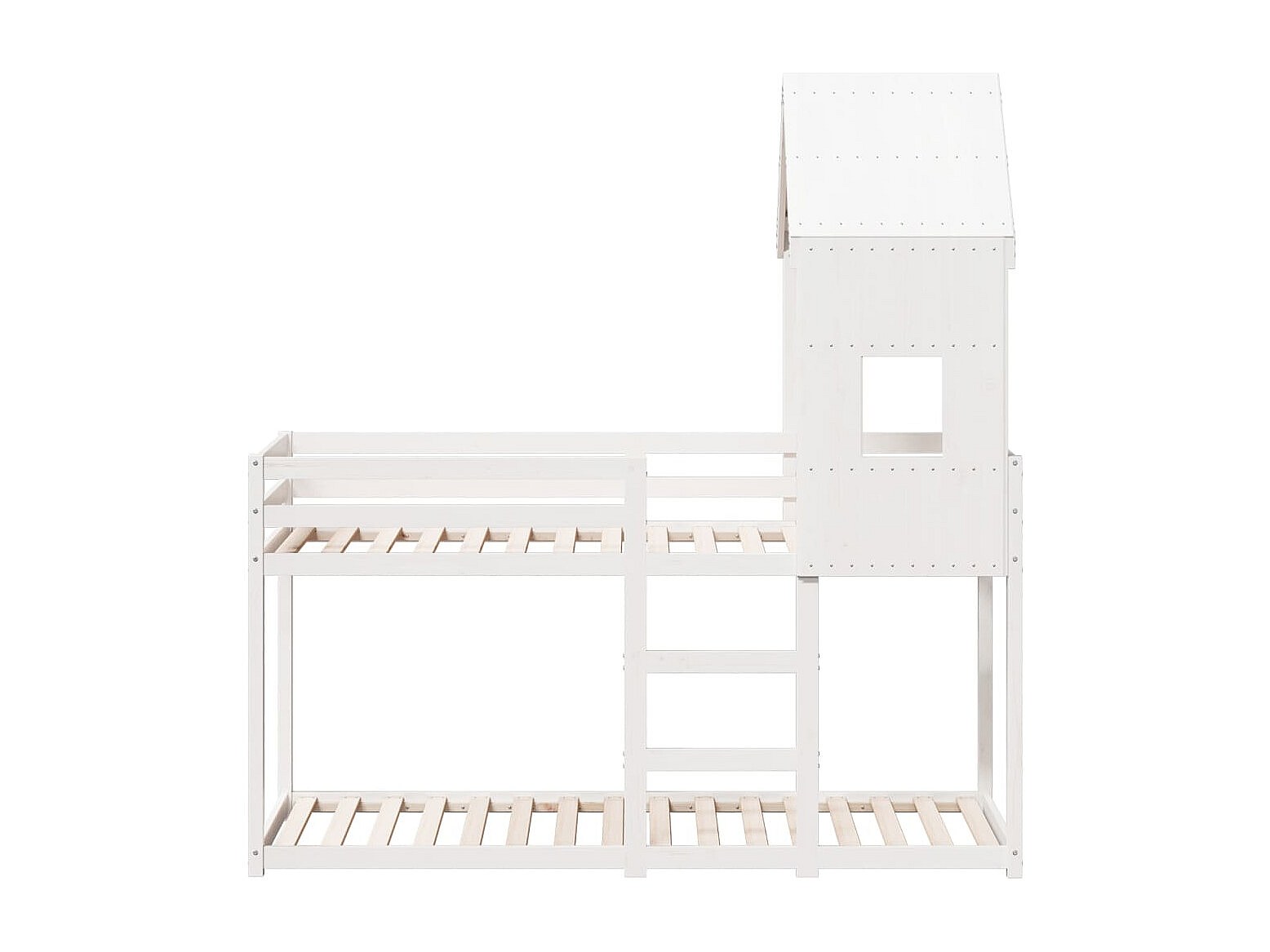 Cama litera con techo madera maciza de pino blanco 90x200 cm