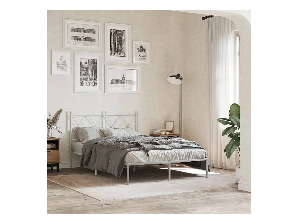 Cama matrimonial- 120x200 cm de metal con cabecero blanca ES591816