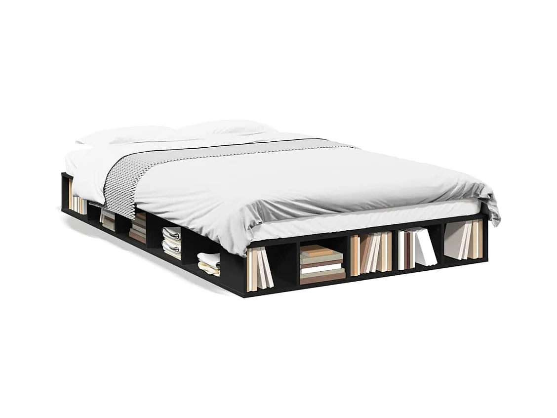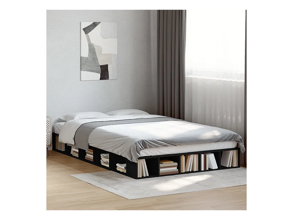 Cama matrimonial- 120x200 cm madera de ingeniería negra ES425406