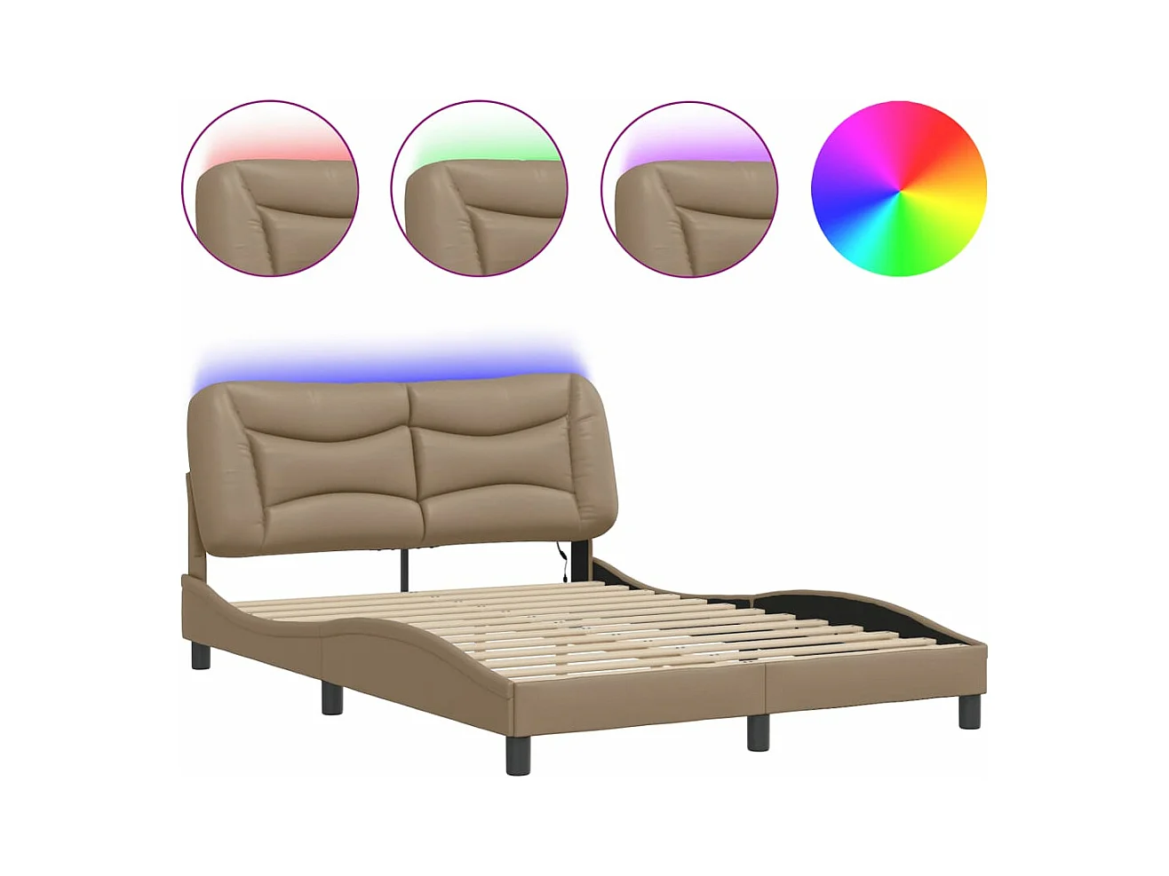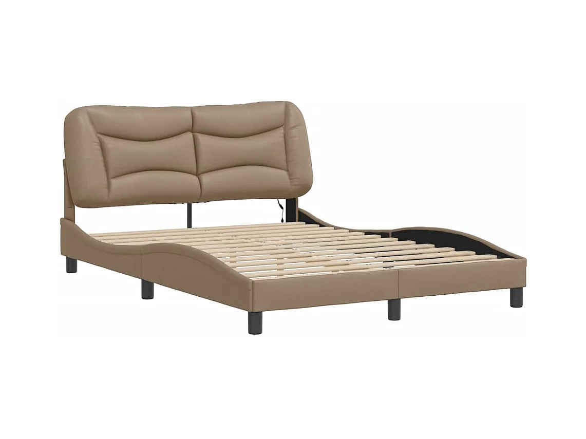 Cama matrimonial- 120x200 cm con LED cuero sintético capuchino ES655006