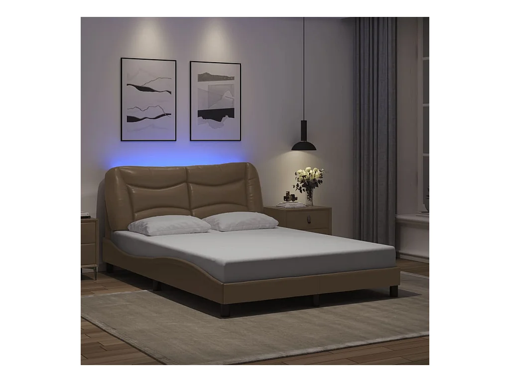 Cama matrimonial- 140x190 cm con LED cuero sintético capuchino ES249745